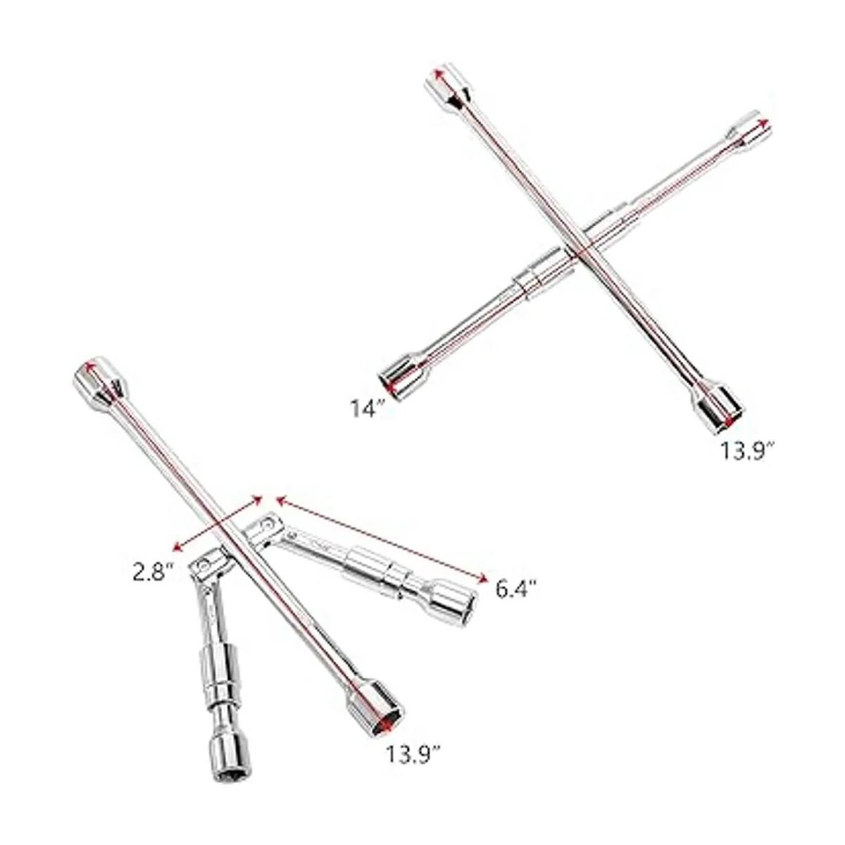 Hedume Paquete de 2 llaves universales plegables de 14 pulgadas, llave cruzada plegable de 4 vías, llave deslizante