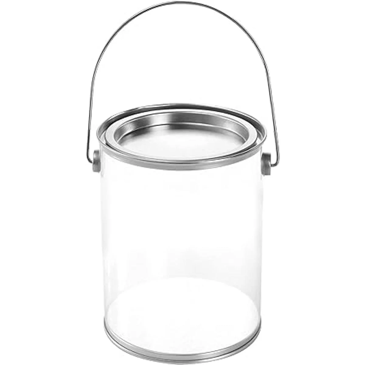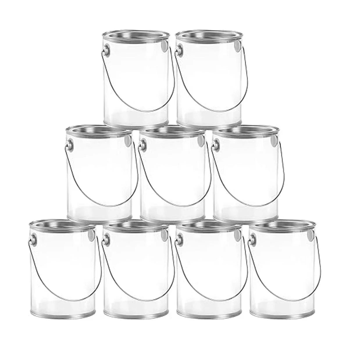 Hedume Paquete de 9 recipientes de pintura transparentes con tapas de metal, latas de almacenamiento de pintura vacías de 5 pulgadas de alto, cubos de pintura sintética decorativos de tamaño cuarto de galón, ideal para recuerdos de fiesta, decoración y bricolaje