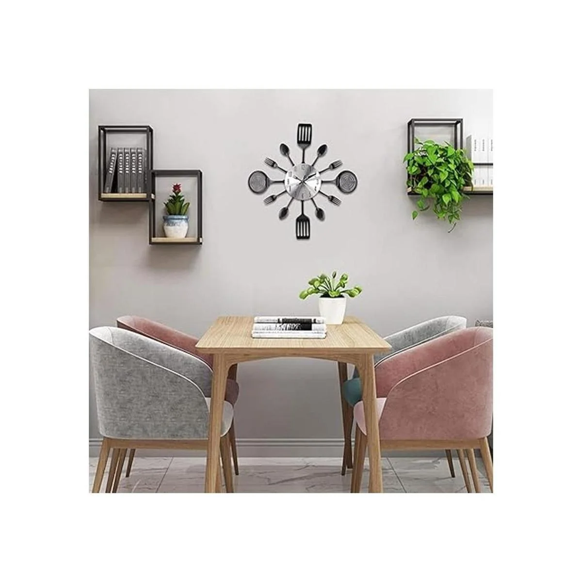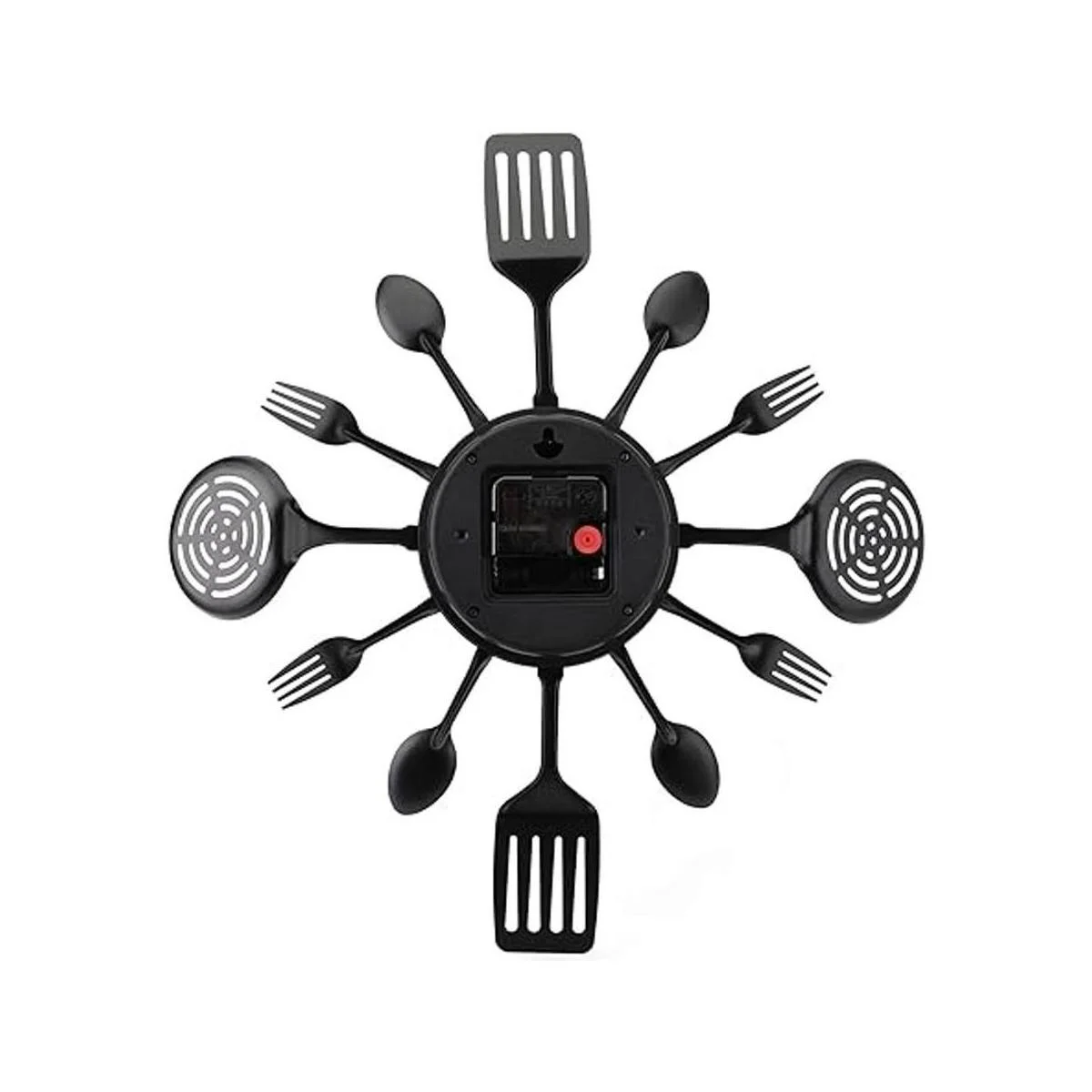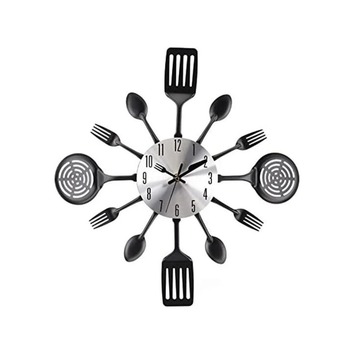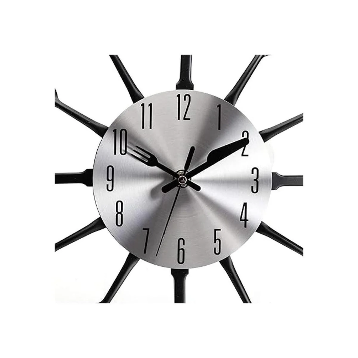 Hedume Reloj de pared de cocina de 16 pulgadas, reloj de pared grande para cubiertos de cocina con cucharas y tenedores, calcomanía 3D moderna creativa extraíble para pared, calcomanía de pared para decoración del hogar