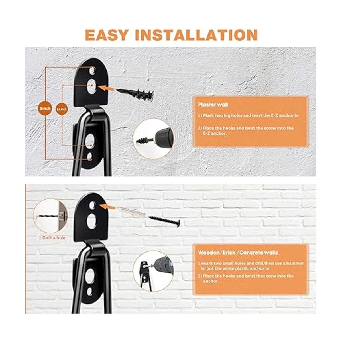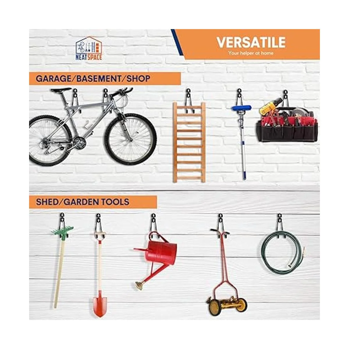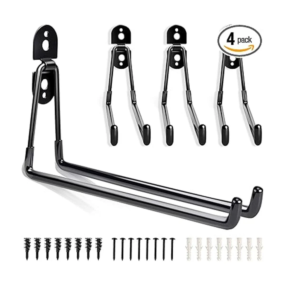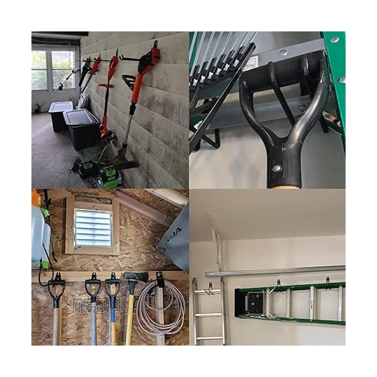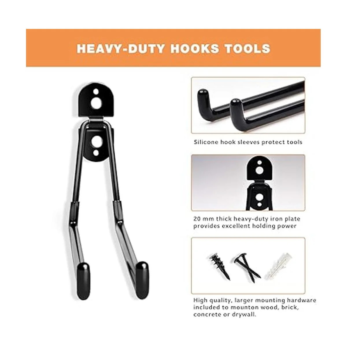 Universal y fácil de instalar: se puede aplicar en varias ocasiones, como garajes, jardines, tiendas, sótanos y otros lugares de trabajo, fácil de instalar con instrucciones, cada gancho de suspensión proporciona 2 tipos de tornillos para su uso en paredes de madera, ladrillo o hormigón, para cumplir con diferentes requisitos de instalación. Proporciona un excelente anclaje para la organización de tu garaje.