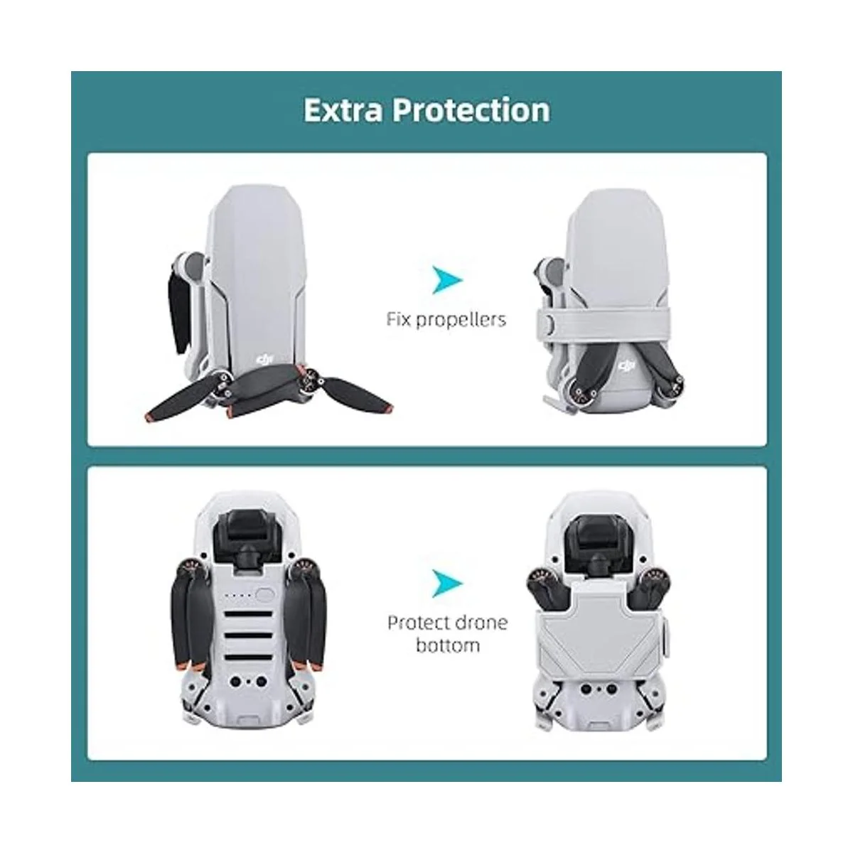 Estabilizador de hélice: mantiene los accesorios de dron ordenados y compactos durante el transporte, evita daños a la hélice, y también puede evitar que la parte inferior del dron entre polvo o se raye.
