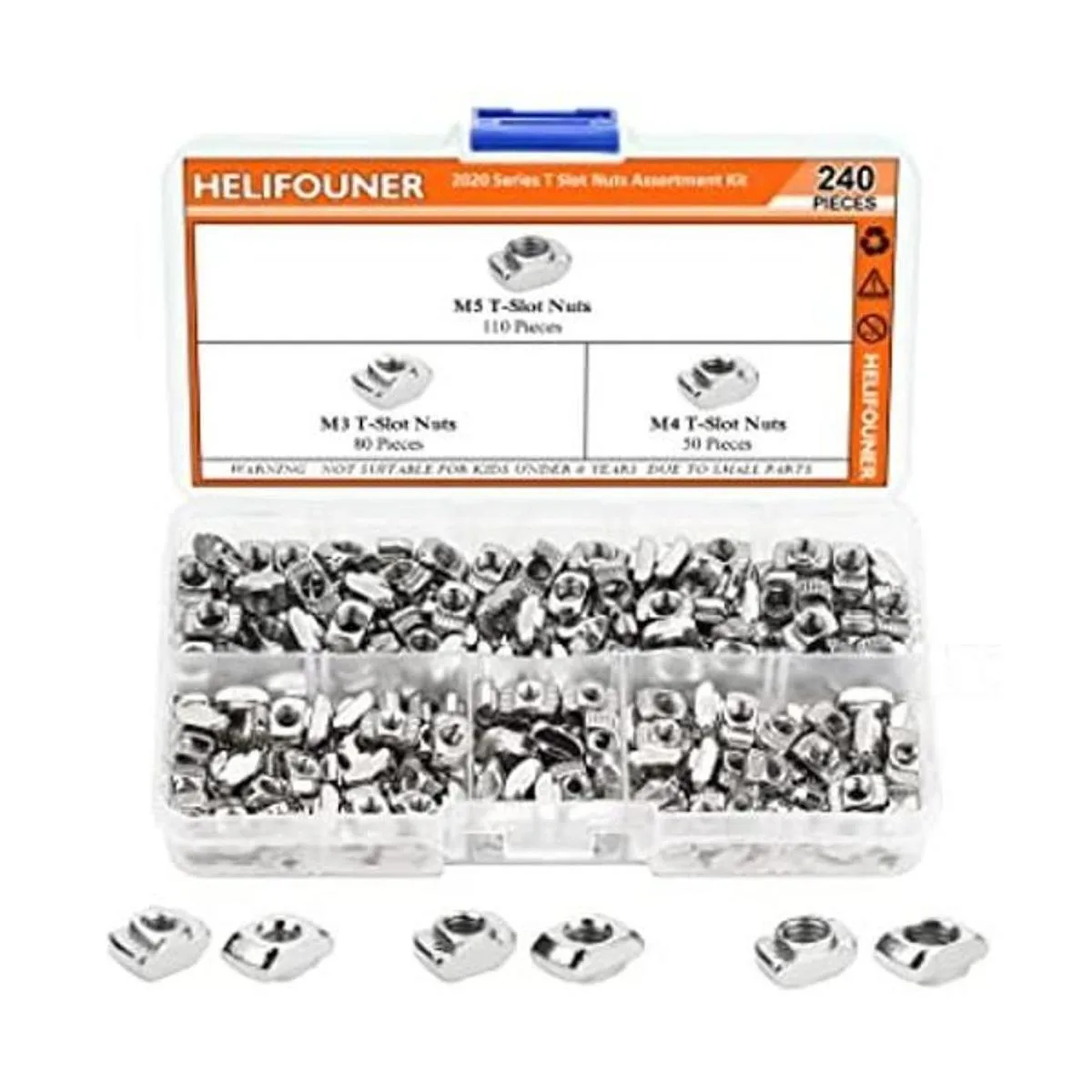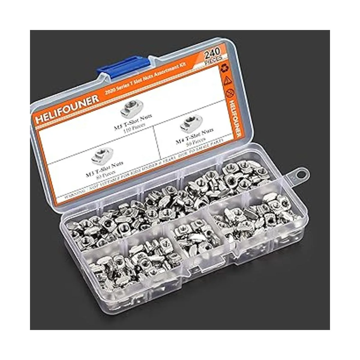 HELIFOUNER 240 piezas de tuercas T de la serie 2020, M3 M4 M5 T Ranura Kit surtido de tuercas
