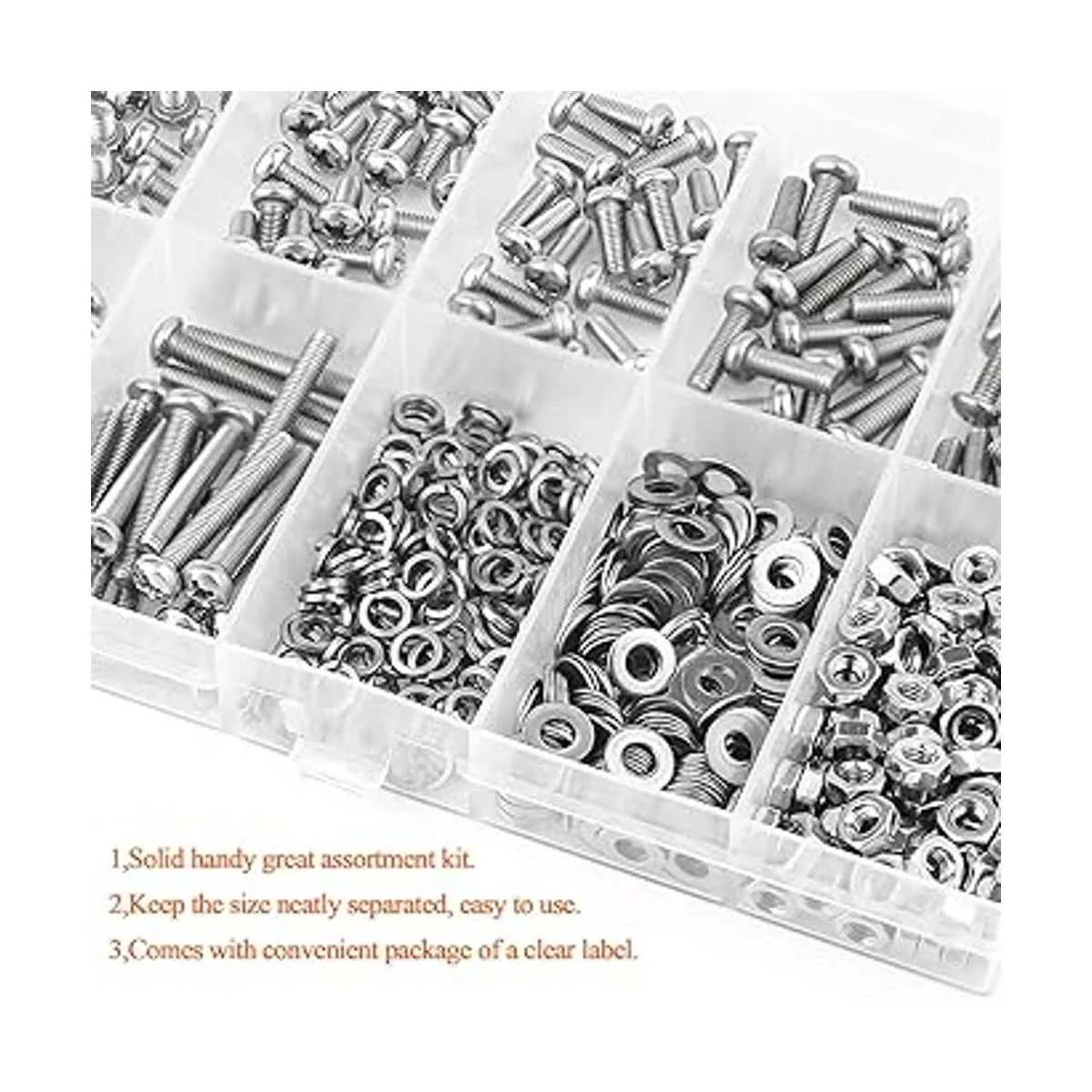 HELIFOUNER 560 piezas M3 x 0.157 in, 0.236 in, 0.315 in, 0.394 in, 0.472 in, 0.630 in, 0.787 in, tornillos de máquina Phillips, tornillos métricos, arandelas y tuercas, acero inoxidable 304