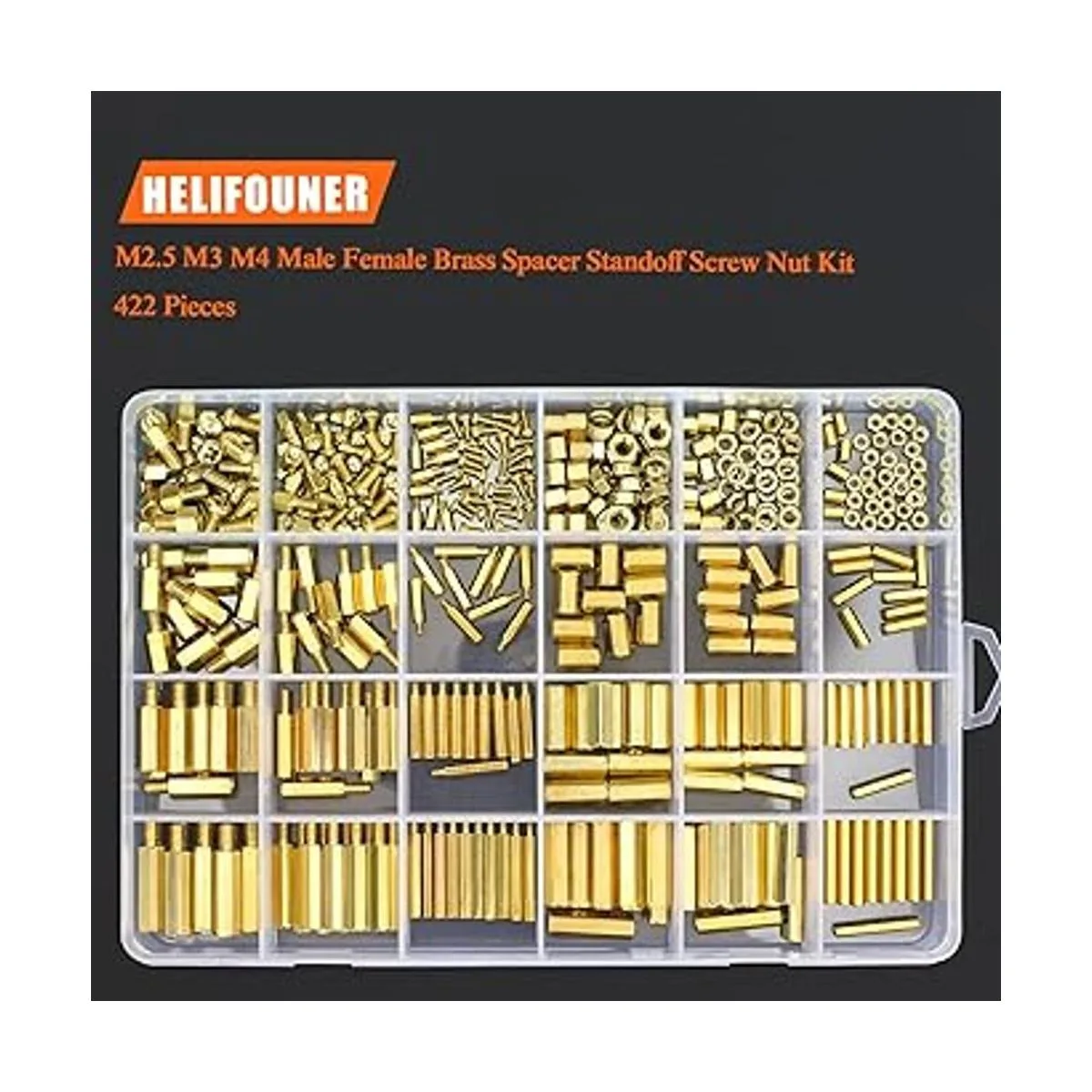 HELIFOUNER Kit surtido de 422 piezas M2.5 M3 M4 macho hembra hexagonal, separadores de latón, tornillos, tuercas, pilar roscado para placa de circuito impreso, placa base
