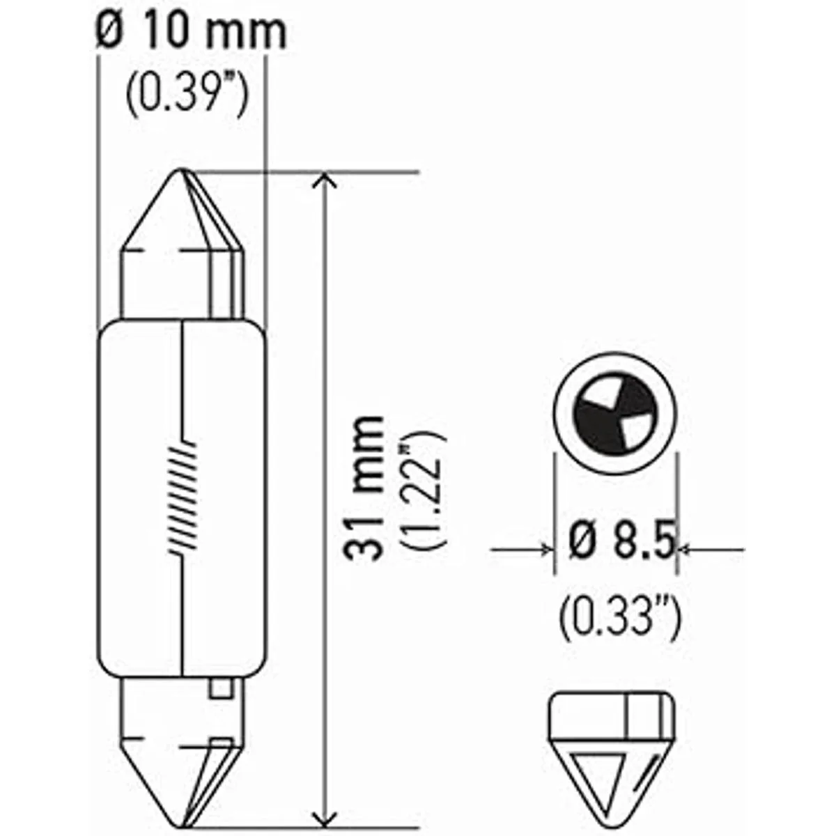 Hella DE3175TB Bombilla 3175 12V 10W Sv8.58 T3.25 10X312