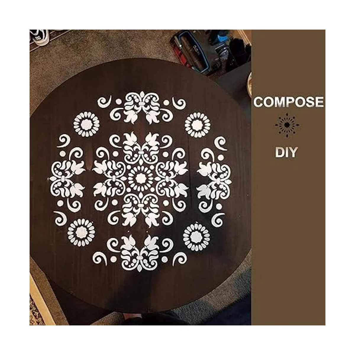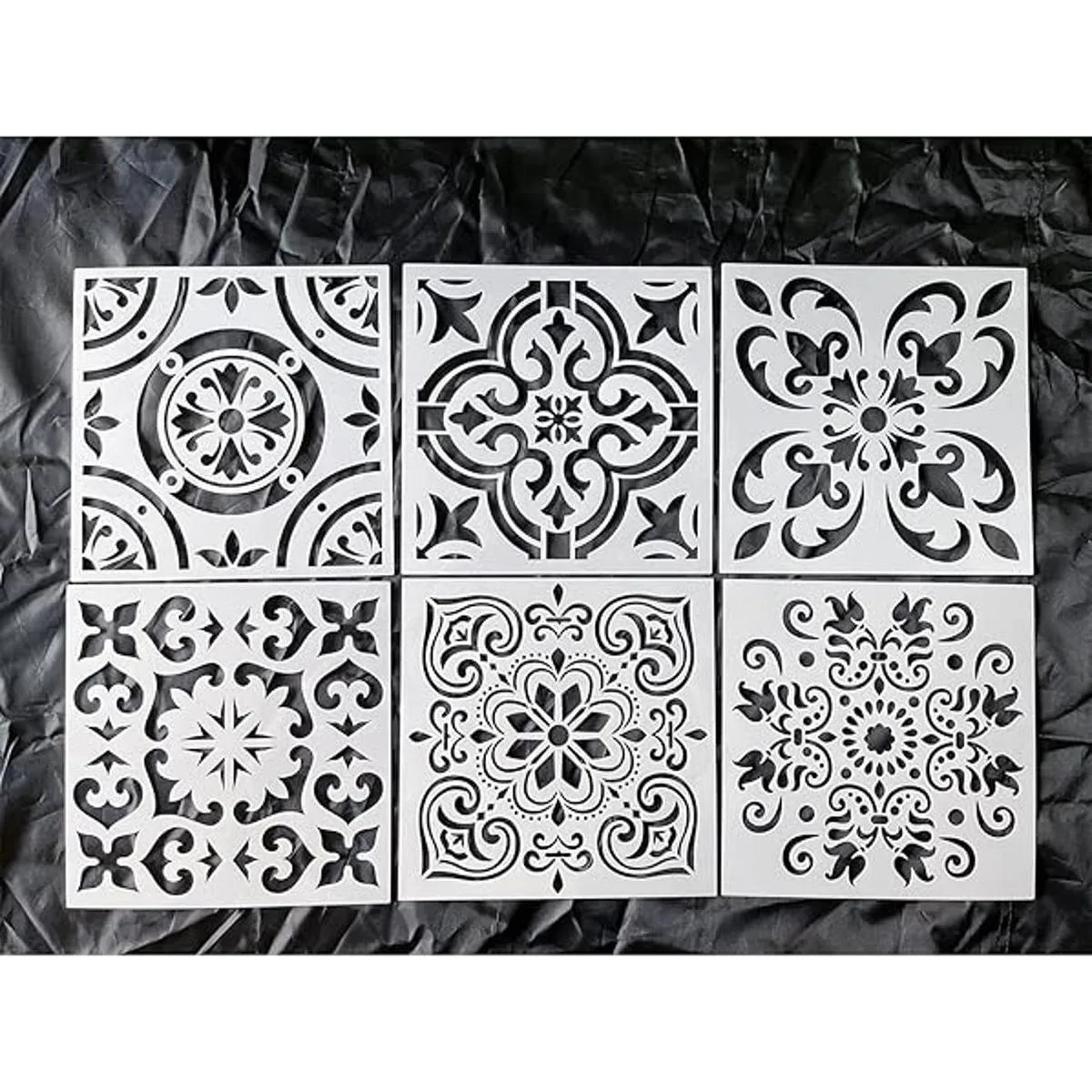 HELLATHUND 6 plantillas reutilizables de azulejos de 12 x 12 pulgadas, plantillas de mandala, plantillas grandes para pintar pisos, plantillas de pared para pintar, plantilla, 6 unidades de mandala
