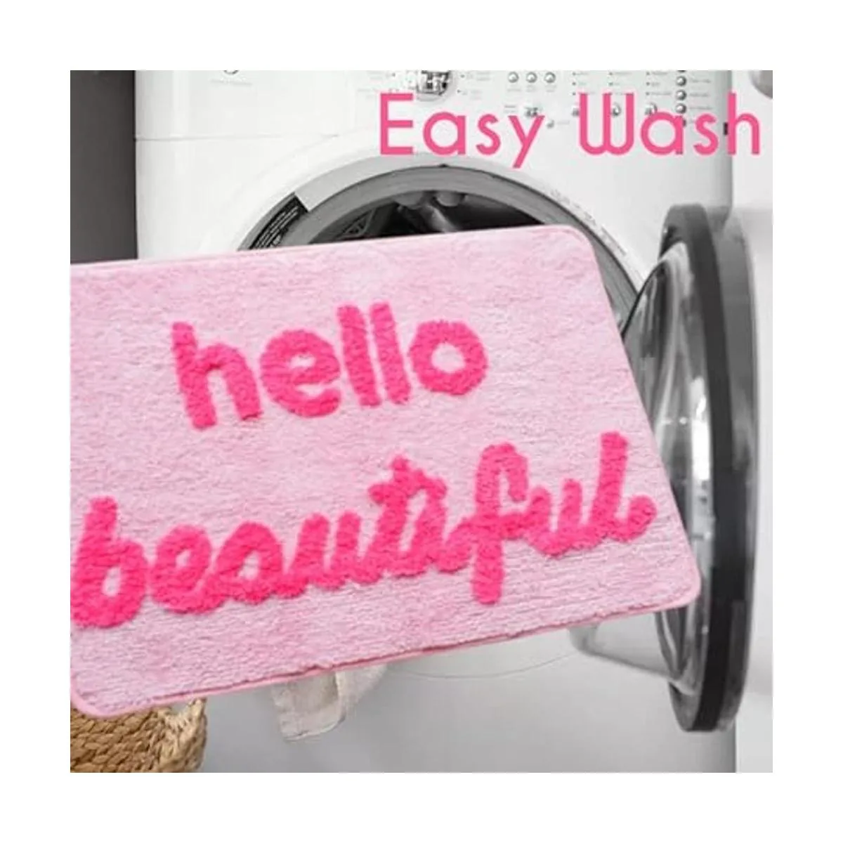 Hello Beautiful Tapete de baño rosa claro, color melocotón y coral, lindo tapete de baño para niñas que te ves bien, hermoso divertido para la ducha, decoración de baño, antideslizante, lavable, para niños y mujeres