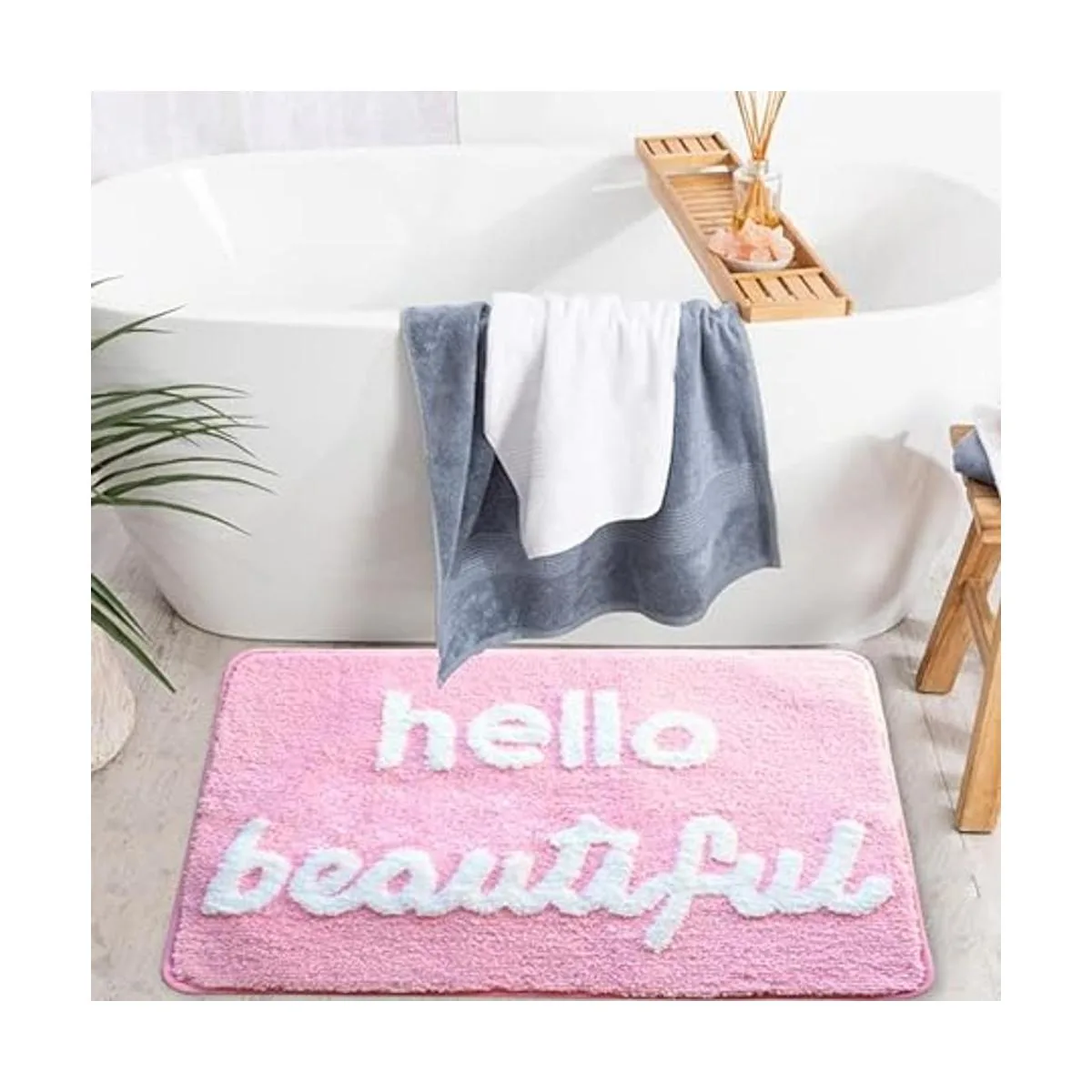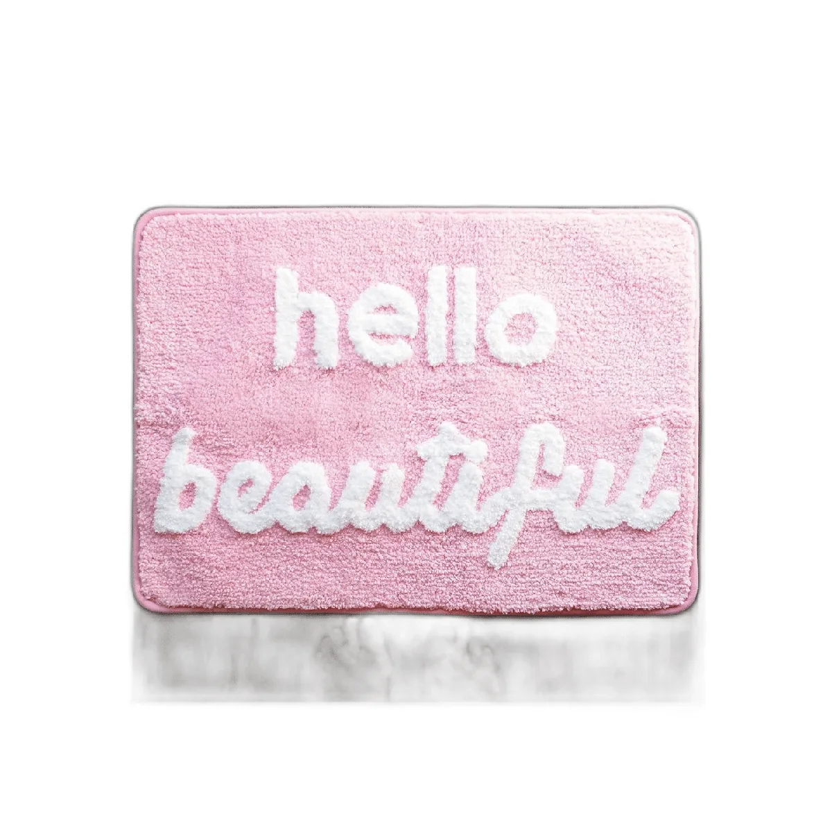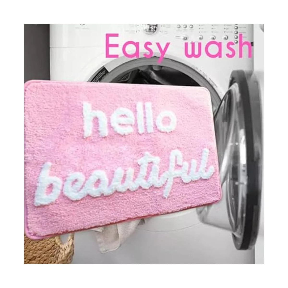 Hello Beautiful Tapete de baño rosa claro y coral durazno lindo tapete de baño para niñas, te ves bien, hermoso y divertido decoración de baño, antideslizante, lavable para niños y mujeres