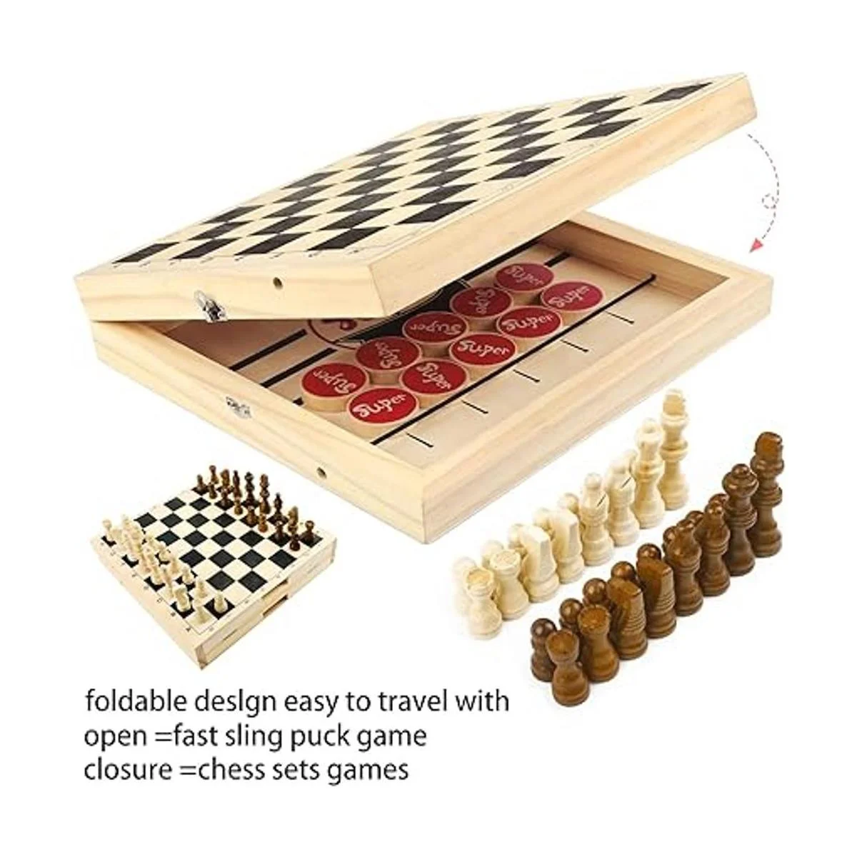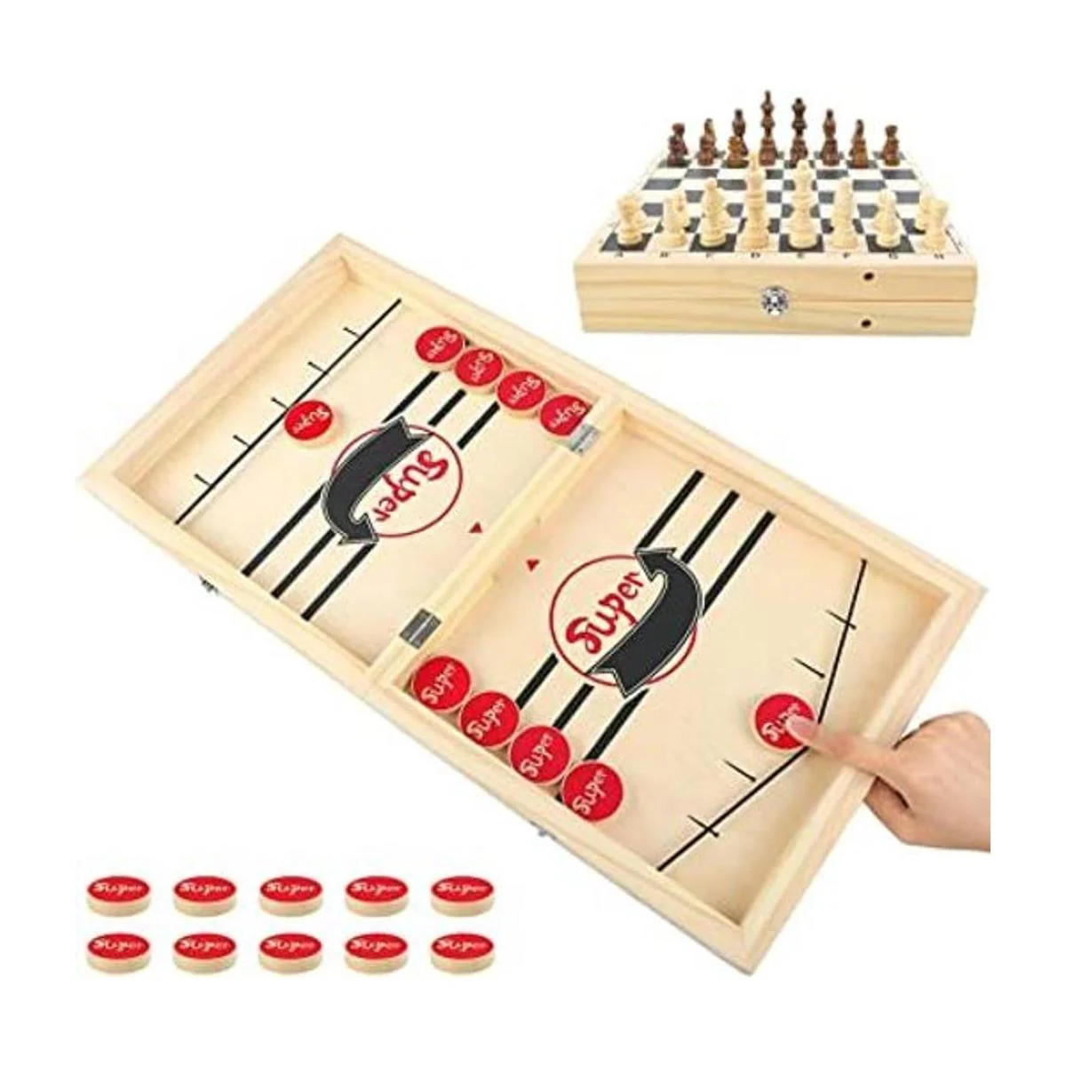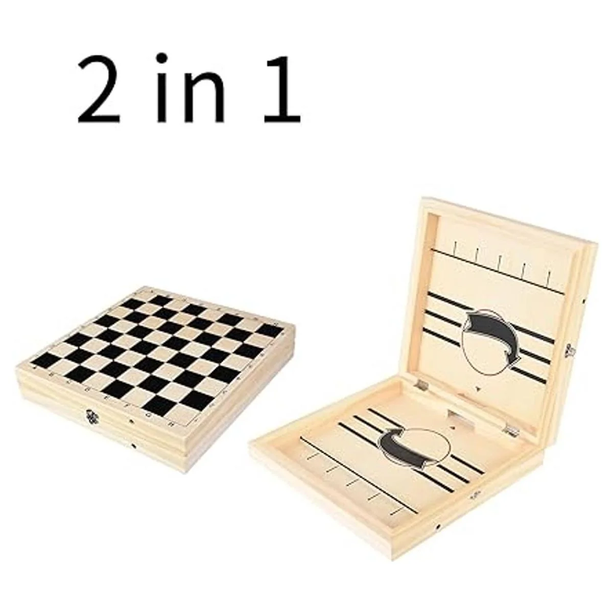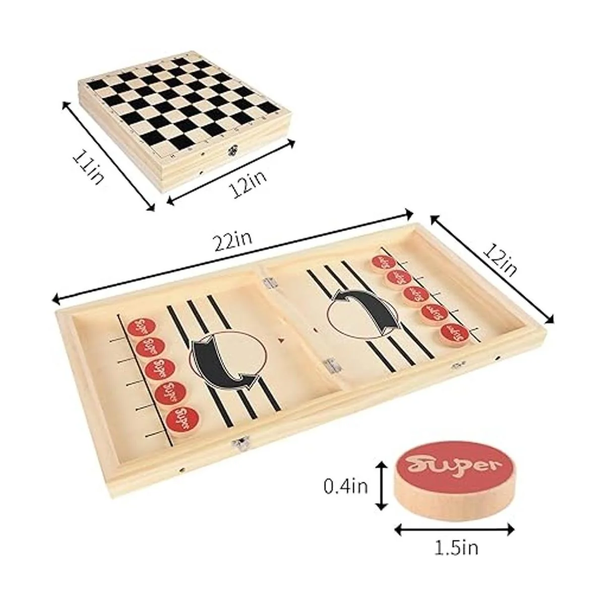 HELLO PAPAYA Juego de disco de eslinga rápida plegable de gran tamaño y ajedrez 2 en 1, juego de hockey de madera, juego de futbolín portátil para niños y adultos, juego de escritorio para padres e hijos para fiestas familiares