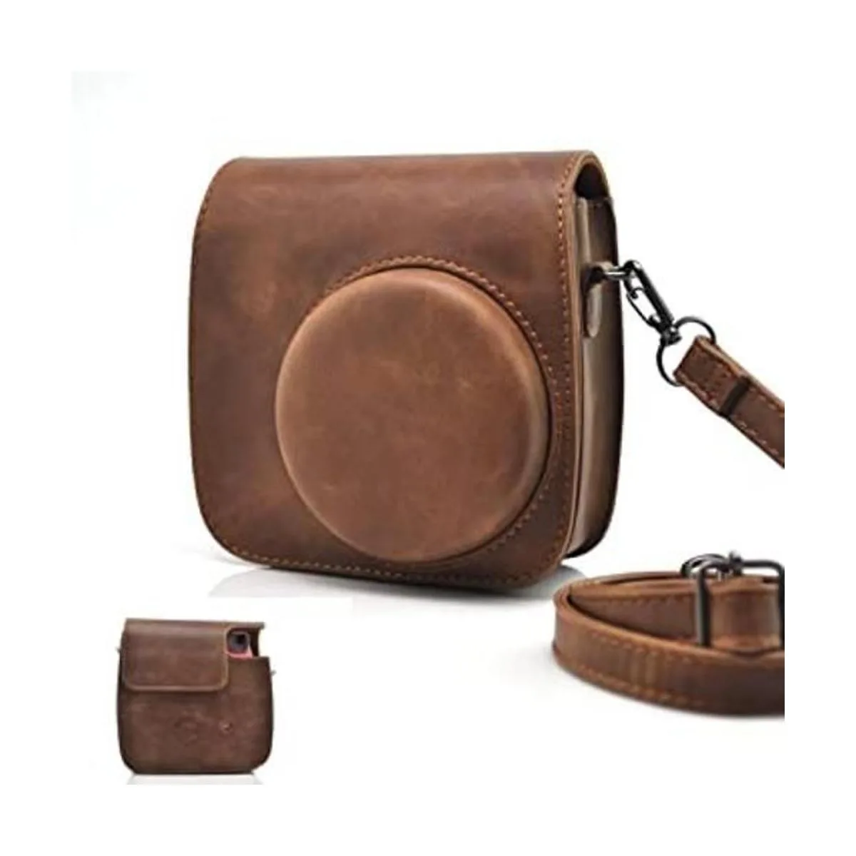 HelloHelio Funda protectora vintage para cámara instantánea Fujifilm Mini 11, bolsa con bolsillo y correa de hombro extraíble marrón