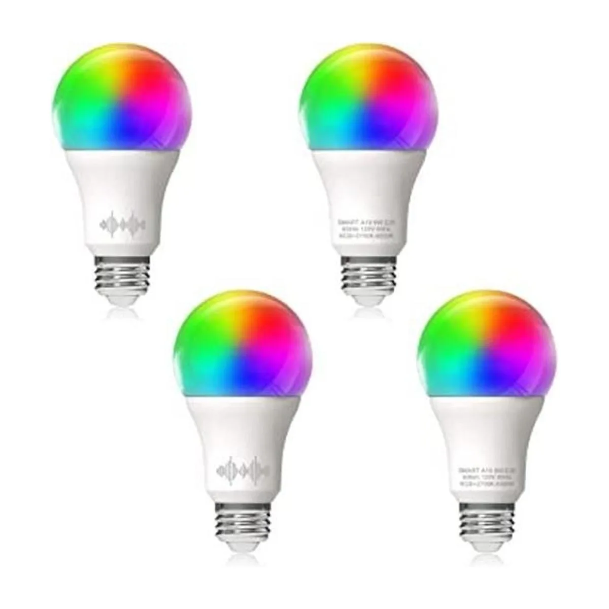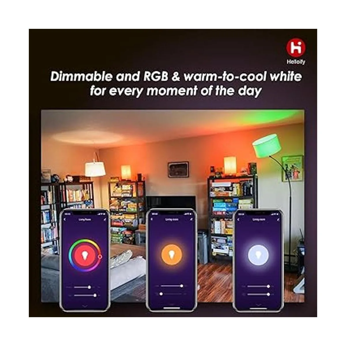 Helloify Bombilla LED inteligente A19, WiFi compatible con Alexa Google Home, cambio de color RGBCW, blanco cálido frío regulable, no requiere concentrador, equivalente a 60 W, RGB2700K6500K, paquete de 4