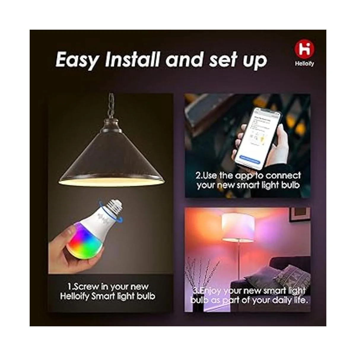 Bombilla inteligente LED de alto brillo de Helloify: siempre escuchamos a la gente quejarse de que las bombillas inteligentes no son lo suficientemente brillantes para la luz de color, pero las bombillas inteligentes Helloify siempre mantienen el alto brillo de 2700 K a 6500 K y 806 lúmenes, perfectas para tus necesidades, hacen que el hogar cambie con tu estado de ánimo