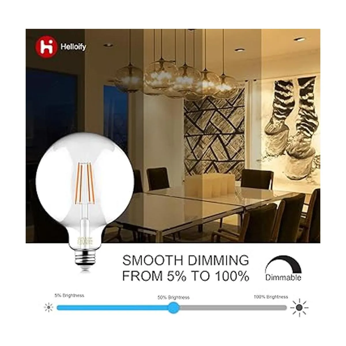 Helloify Bombillas de filamento Edison LED vintage equivalente a 60 W, regulables, 5.5 W, 500 lúmenes, vidrio transparente, blanco suave de 2700 K, base de tornillo E26, paquete de 4
