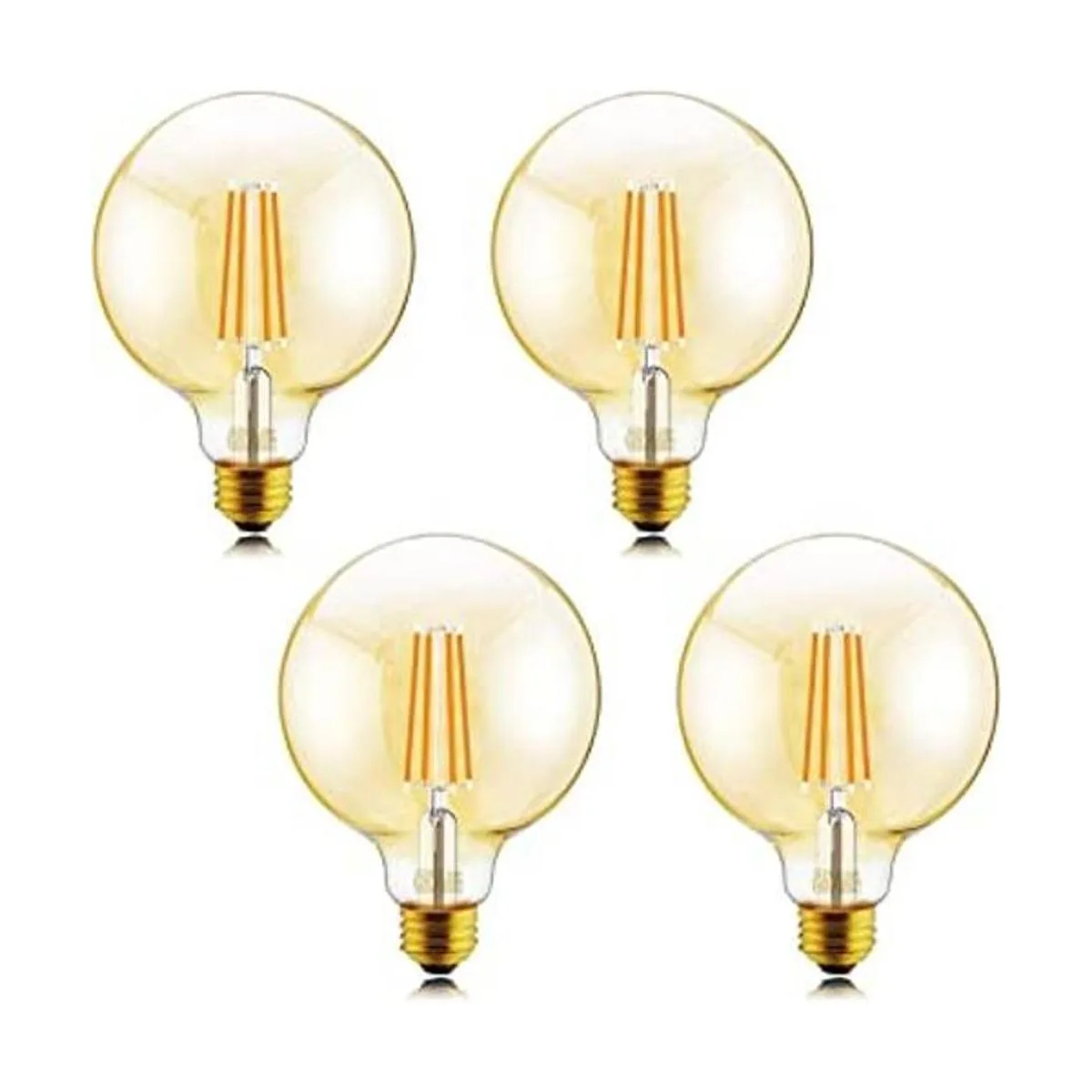 Helloify G25 Bombilla LED Edison de cristal ámbar regulable, regulable, equivalente a 60 W, lámpara de filamento de alto brillo, blanco cálido de 2500 K, estilo antiguo, base de tornillo E26, 4 unidades paquete de 1