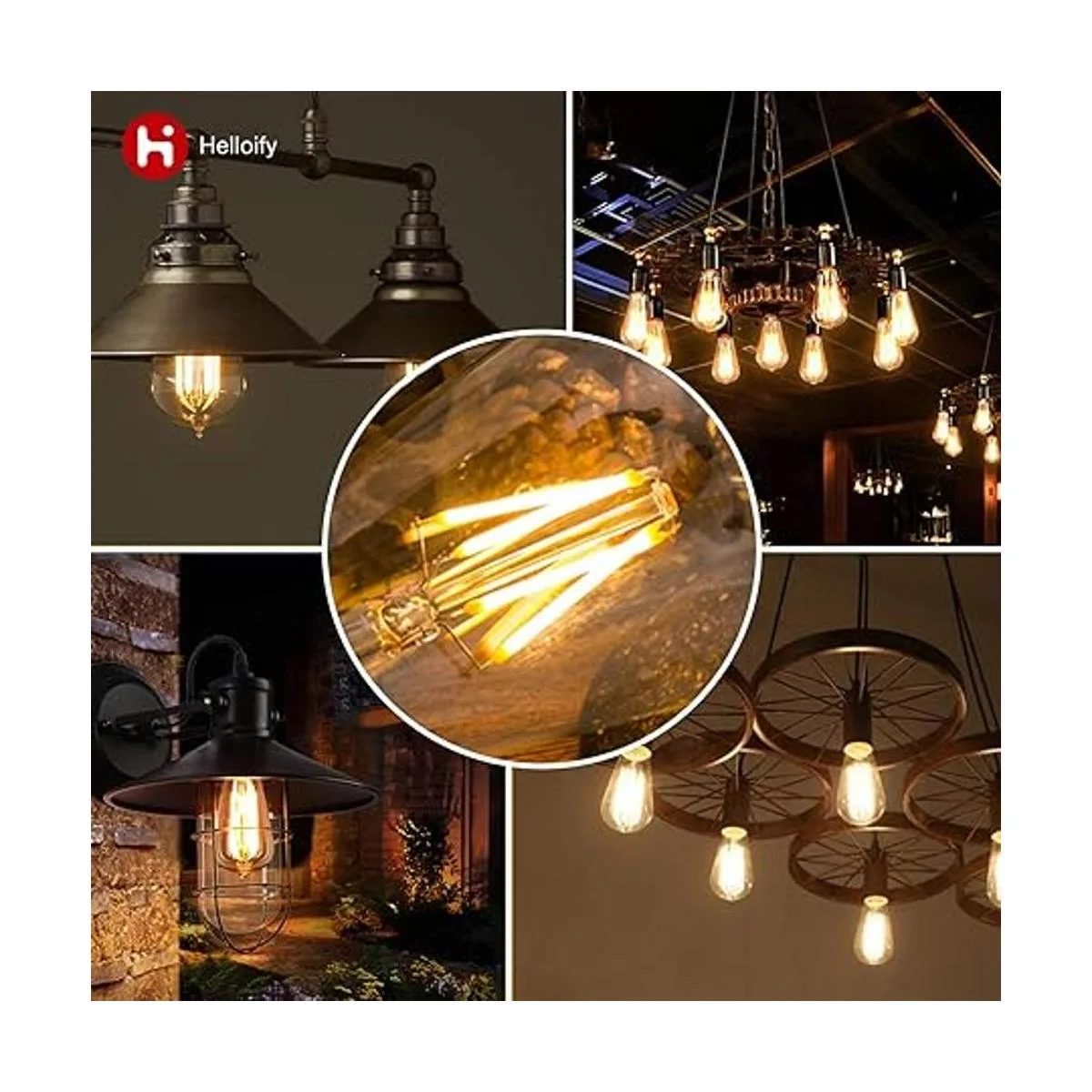 MultiFunction vintage style bulb Clear glass Edison bulbs are built with an attractive teardrop design and squirrel cage filament preserve. Decorative antique bulb for office, restaurant, home, bedroom, bathroom, kitchen, garage. Helloify classic led bulb is a cool gear decoration and ideal for outdoor lanterns, ceiling fixtures, chandeliers and pendants, multiple places youd like to decorate with.