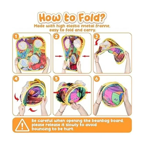 Fácil de montar y almacenar: simplemente abre el paquete y saca la tabla de agujeros de maíz, luego pega las calcomanías mágicas en ambos lados. Viene con una bolsa de almacenamiento e instrucciones idioma español no garantizado, que puede llevar fácilmente el juguete al parque, patio, playa, etc. Satisface todas las necesidades en el viaje portátil.