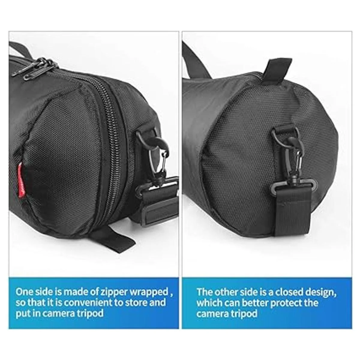 Diseño mejorado: Utiliza cremalleras y cierres SBS, suave y duradero, hace que sea más fácil poner tu trípode dentro y fuera. La correa de hombro de cuero hace que sea cómodo de llevar. Con diseño de asa de transporte acolchada para una sujeción cómoda. Con gancho de metal duradero.