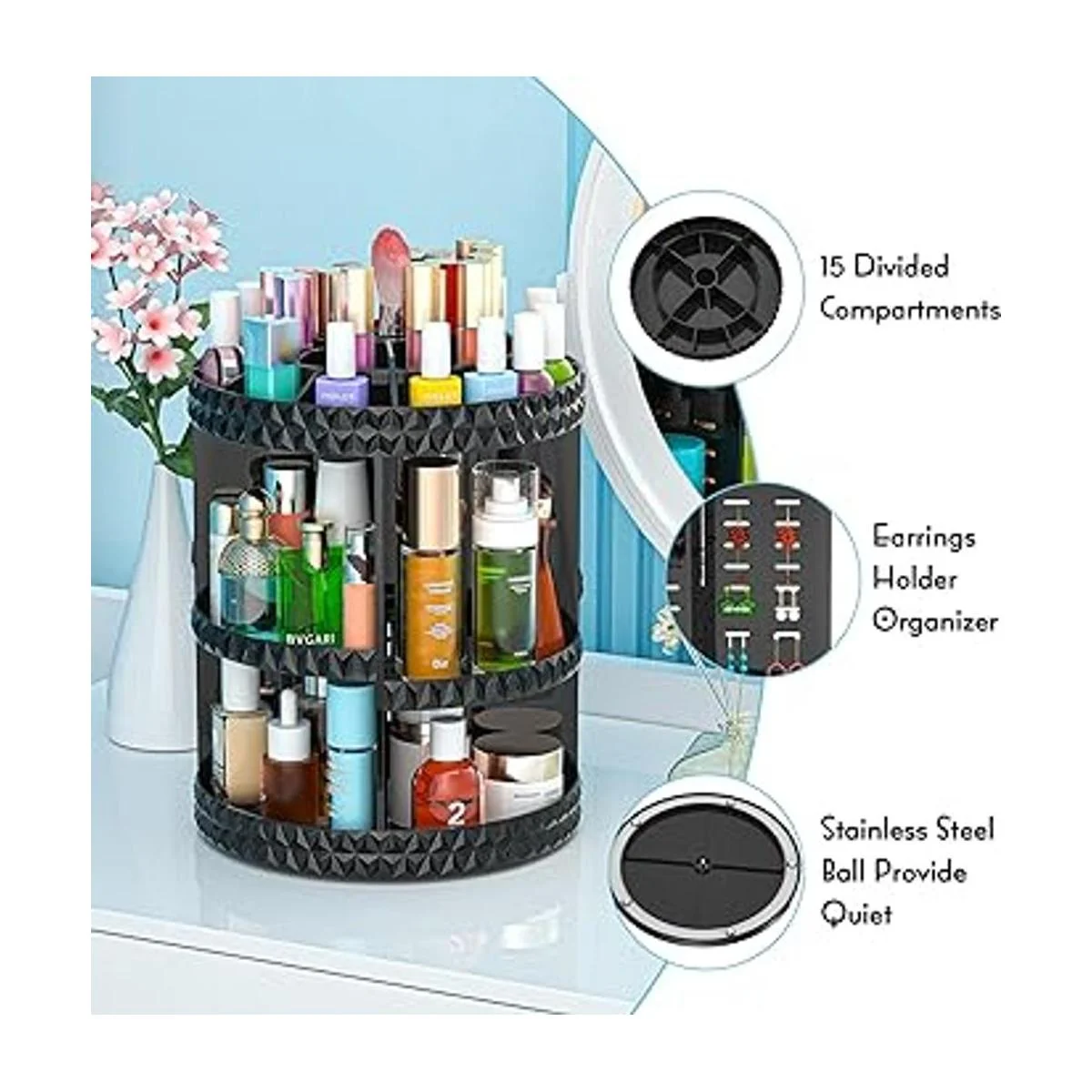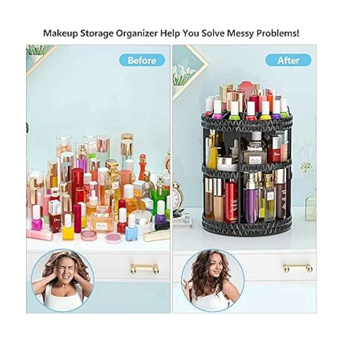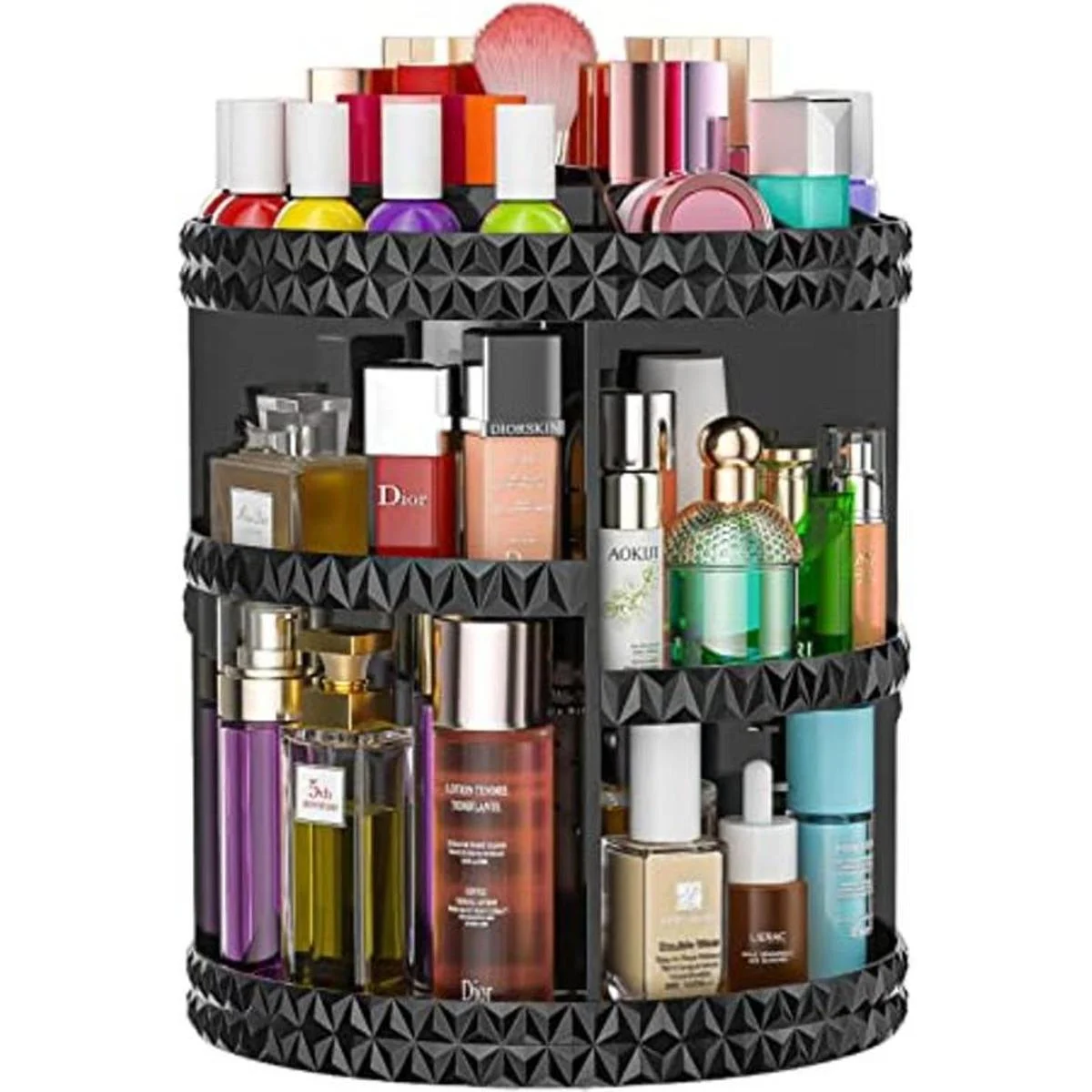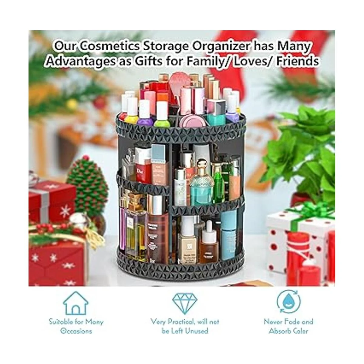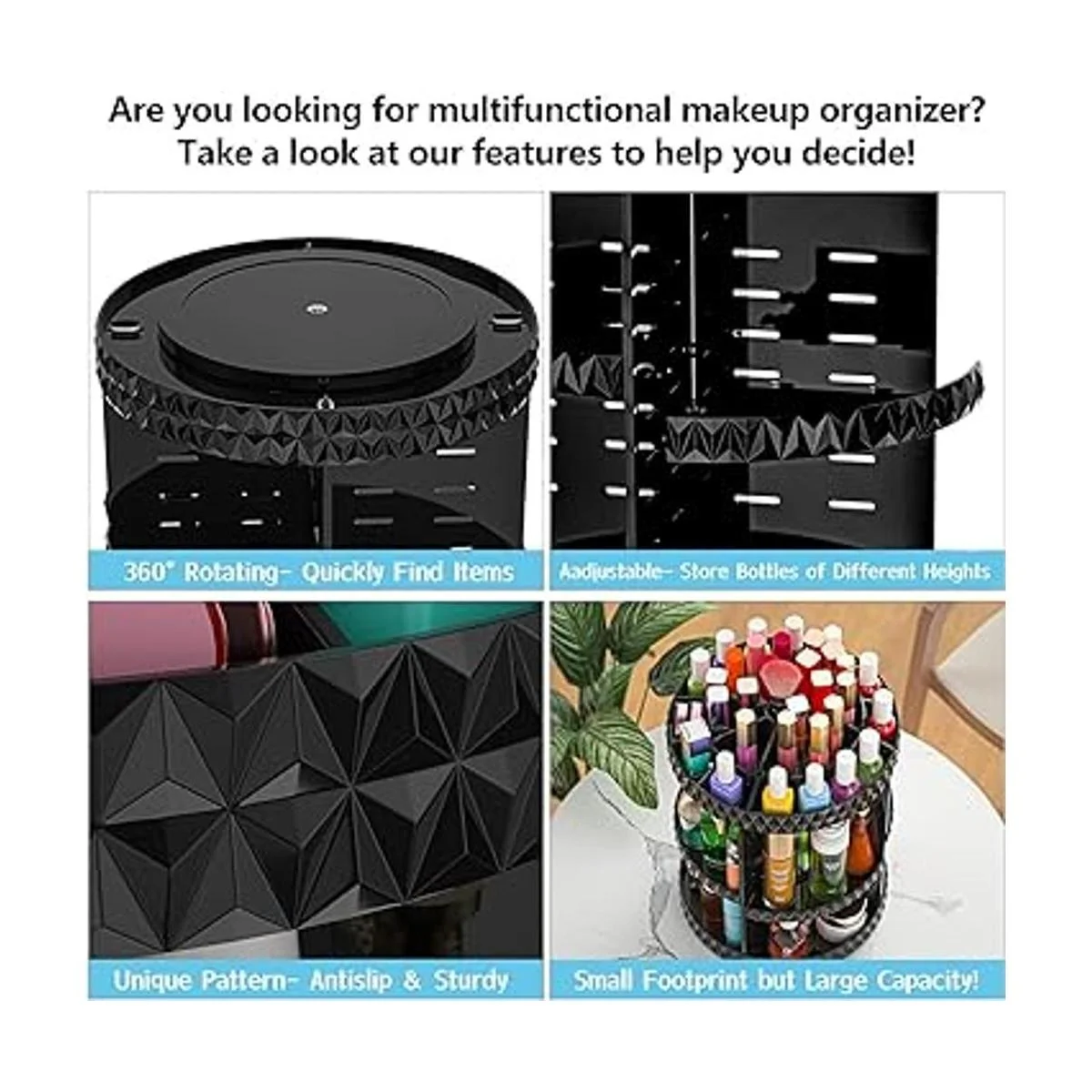 Mantiene todo organizado: la gran capacidad y la rotación de 360 de nuestro organizador de cosméticos tienen la ventaja de un acceso rápido, suficiente almacenamiento, alta fiabilidad y ahorra espacio. Simplemente almacena tu rutina de maquillaje y cuidado de la piel, cosméticos y accesorios en un solo lugar, lo que te proporciona una gran comodidad.