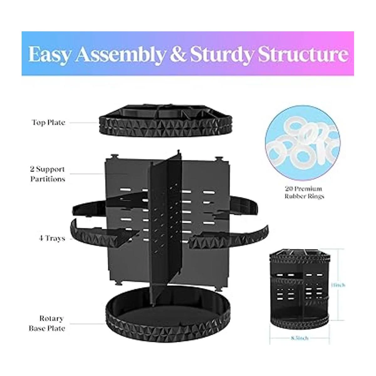 Solución perfecta para la vida: el kit organizador de maquillaje incluye 20 anillos de goma se añaden 4 anillos adicionales, 4 bandejas, 2 tablones, 1 placa superior, 1 placa base, 1 instrucciones idioma español no garantizado. Si se produce algún problema durante tu uso, no dudes en consultarnos, te daremos una respuesta satisfactoria en 24 horas.