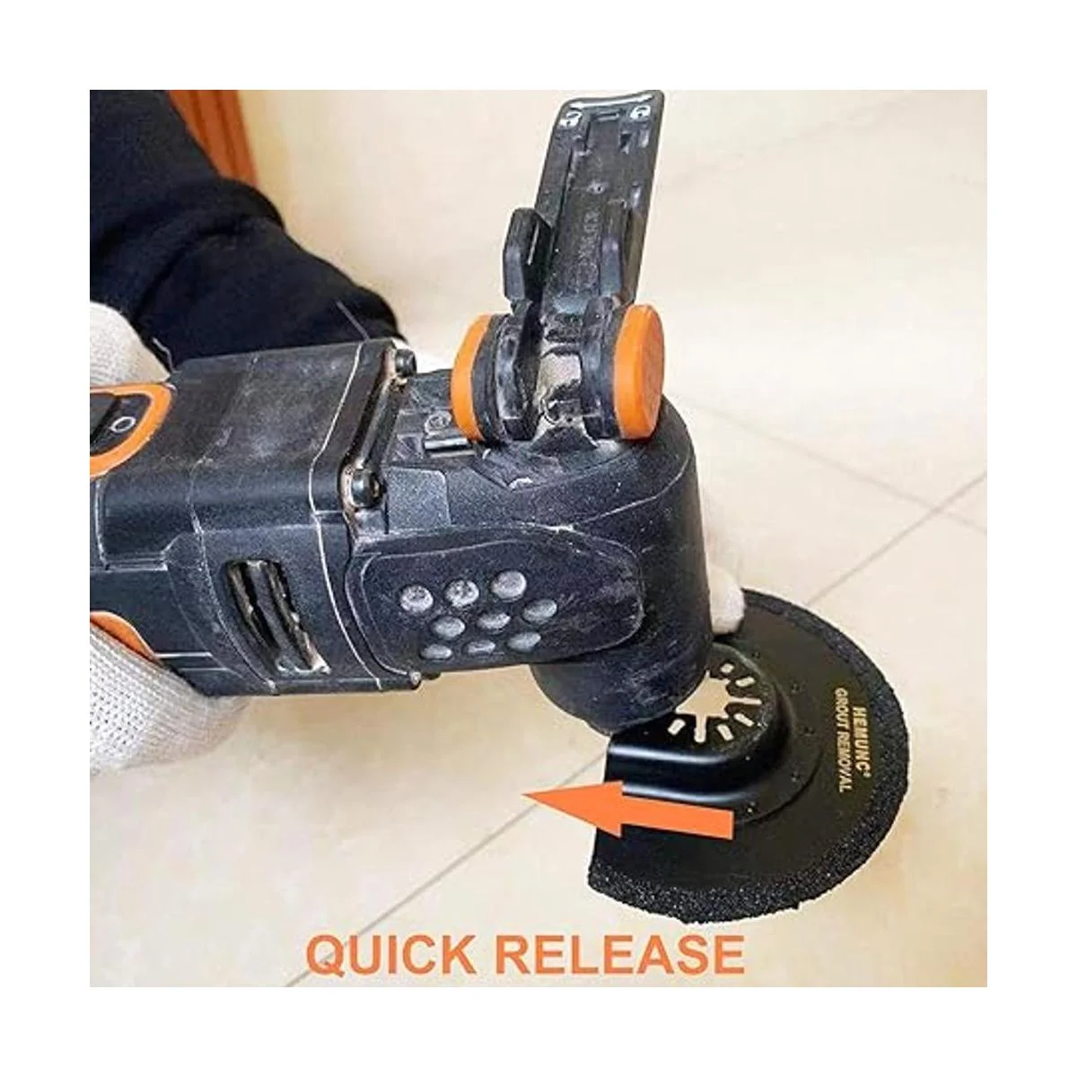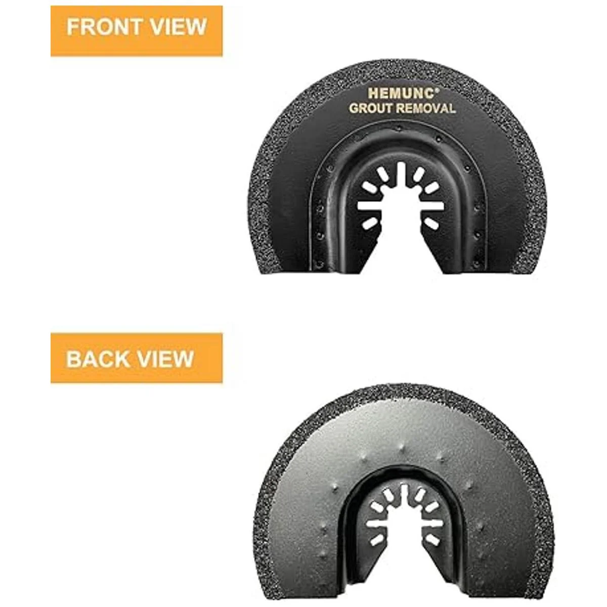 Hoja de alta calidad para herramienta oscilante: las cuchillas de lechada de carburo oscilante HEMUNC están hechas con tecnología revolucionaria de carburo, robusta y duradera, que funciona muy bien para salpicaduras traseras, juntas de pared a suelo en duchas, etc., el grano de carburo dura hasta 2 veces más que productos similares en el mercado.