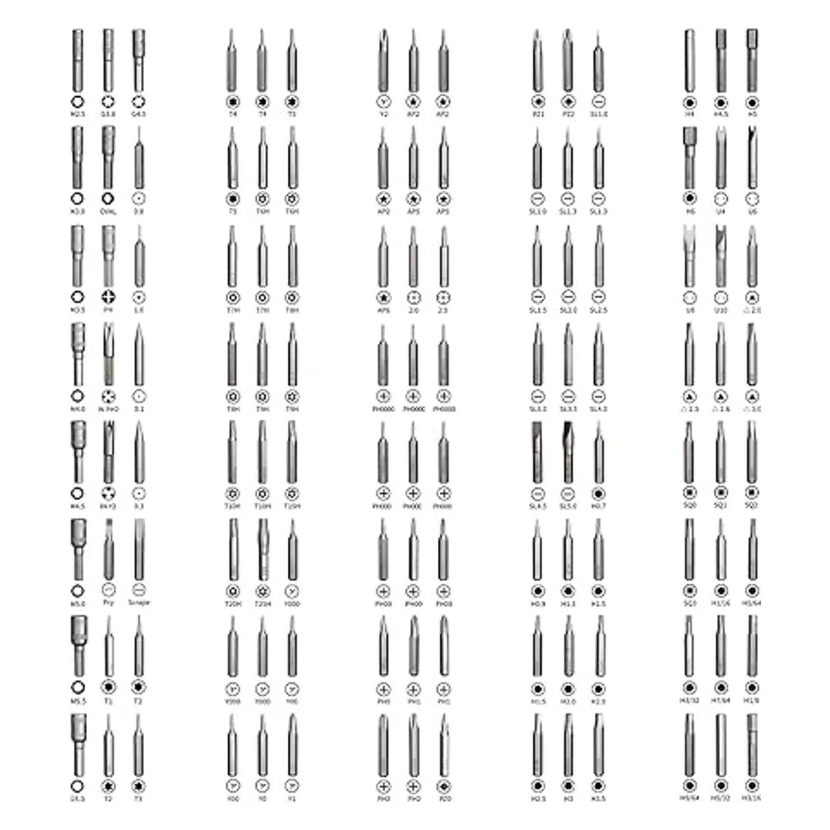 Este juego de destornilladores tiene 120 puntas diferentes Phillips, Flathead, Torx, Torx Security, Pentalobe, Triwing y más, que es útil para laptop, construcción de PC, teléfono celular, tablet, MacBook, iPhone, iPad, consolas de juegos/controlador, timbre de puerta, máquina de coser, HVAC, cuchillo y mucho más. Este es el kit de herramientas que cada aficionado, fijador, aficionado y profesional necesita para hacer frente a cualquier trabajo, también es un regalo decente y genial para familiares, amigos, colegas, etc