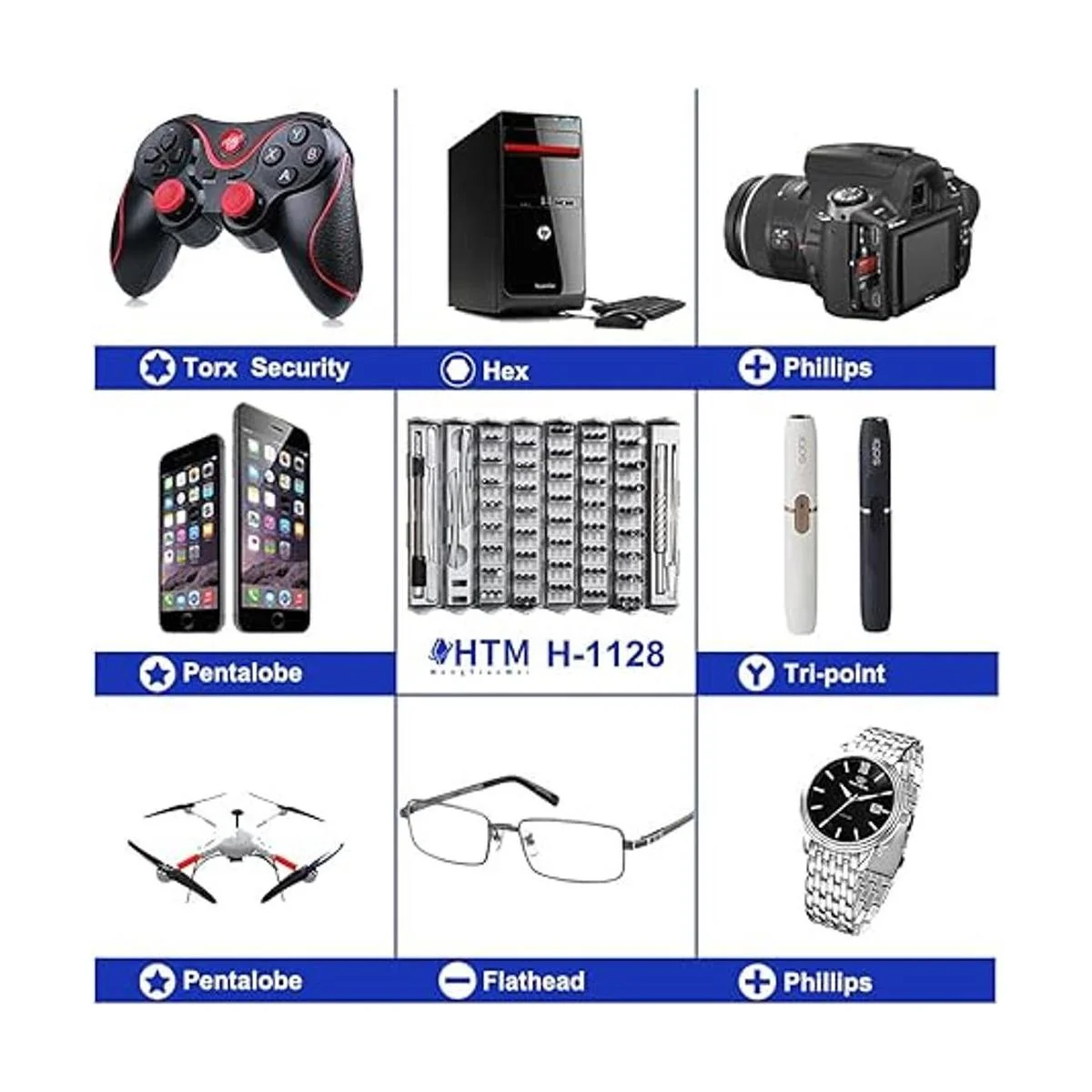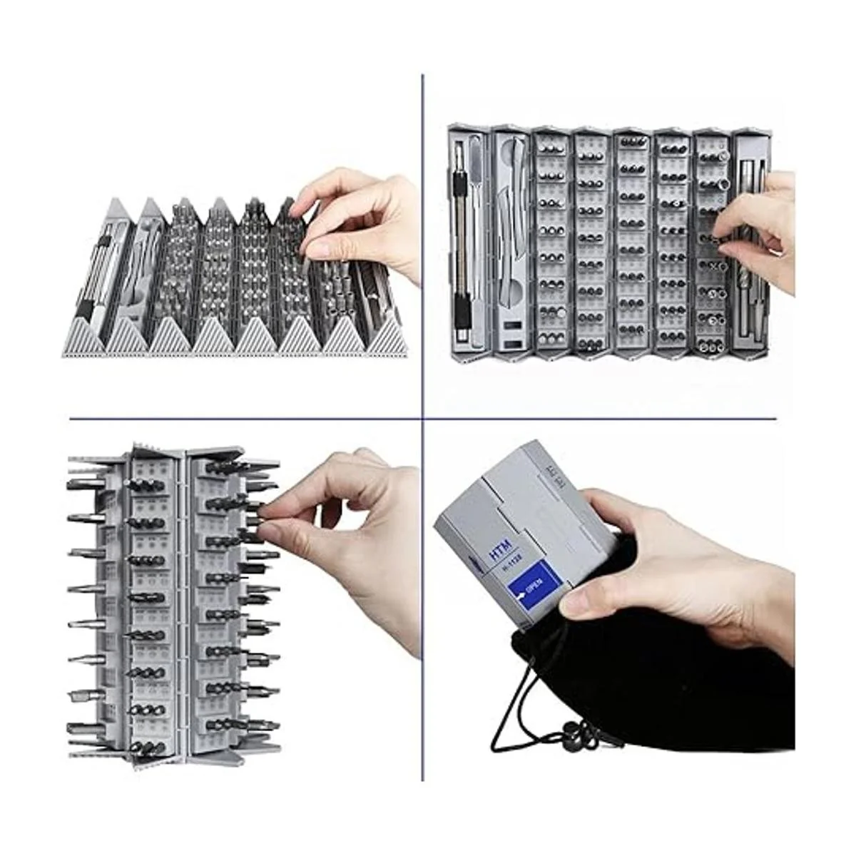 HengTianMei Juego de destornilladores de precisión 128 en 1, kit de herramientas de reparación magnética profesional para computadora, laptop, Xbox, MacBook, consola de juegos H1128
