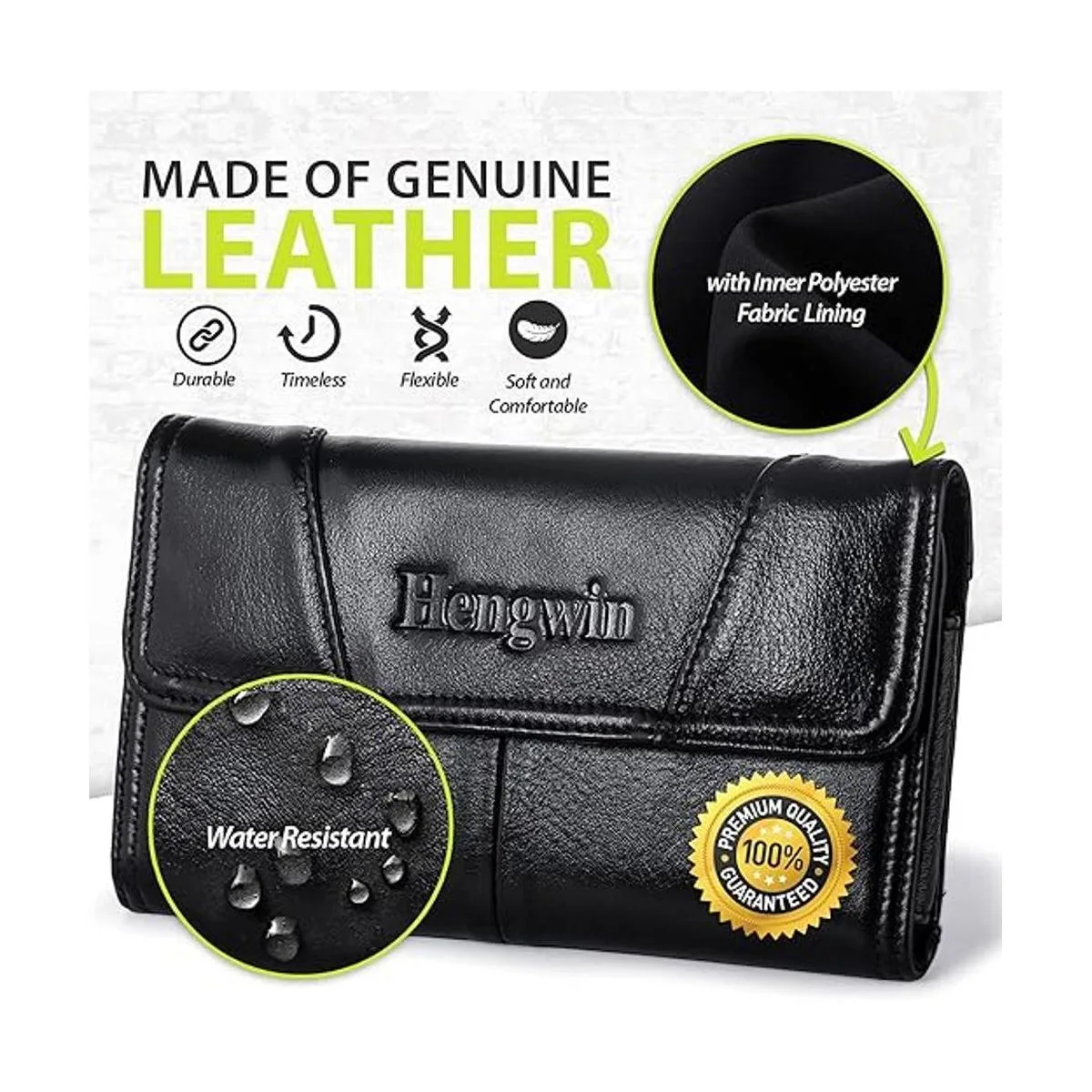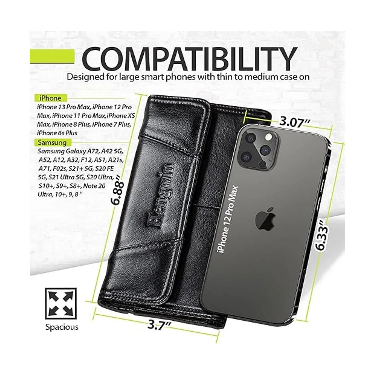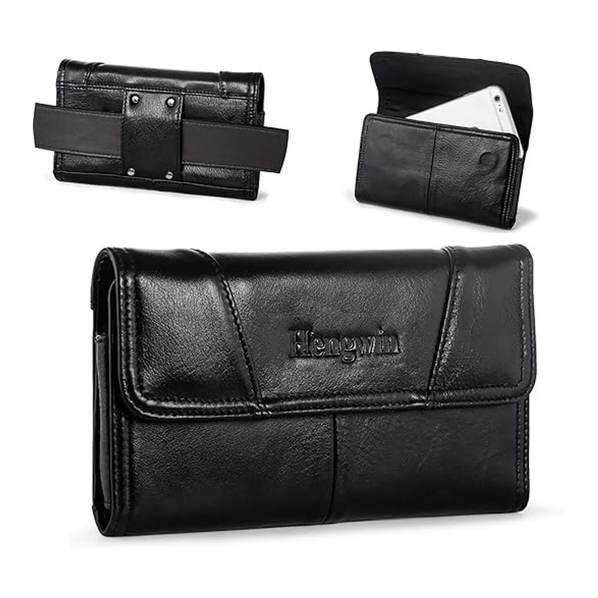 Hengwin Funda de piel para iPhone 12 Pro Max Xs Max 8 Plus 7 Plus 6S Plus Funda para cinturón para Samsung Galaxy A52 5G A32 A51 S21 S20 FE 5G S10 S9 S8 Plus con funda en color negro