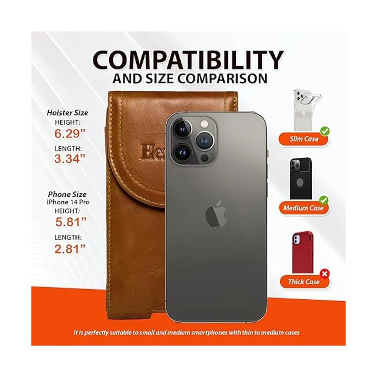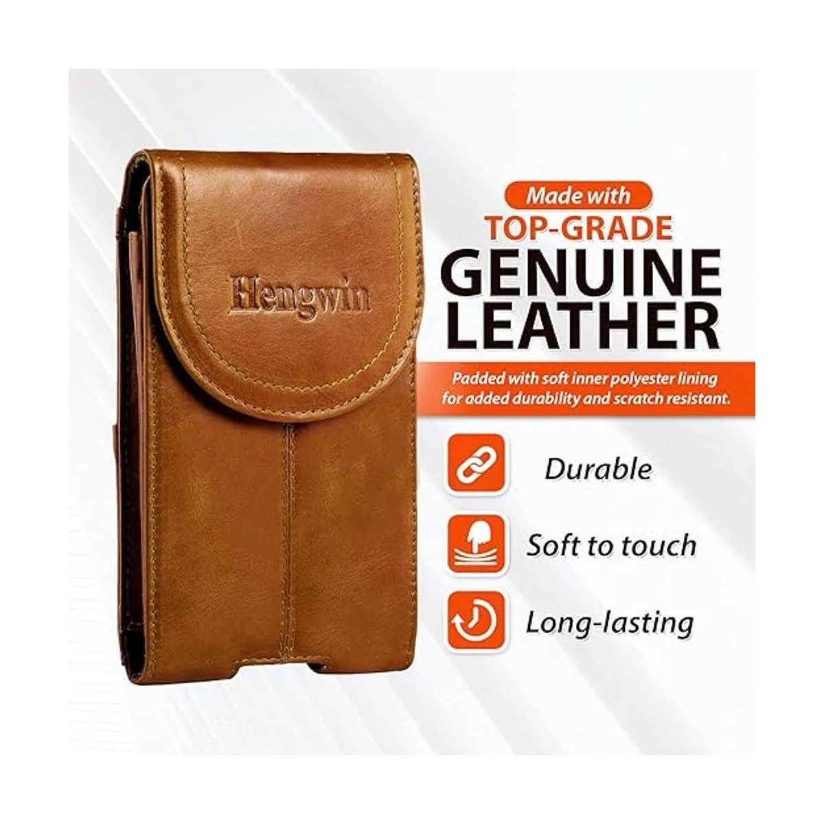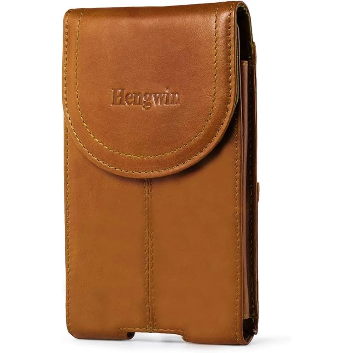 Hengwin Funda para cinturón para iPhone 14, 13, 12 de piel auténtica con clip para cinturón, cierre magnético, correa para cinturón para hombre se adapta a funda finamediana encendida marrón