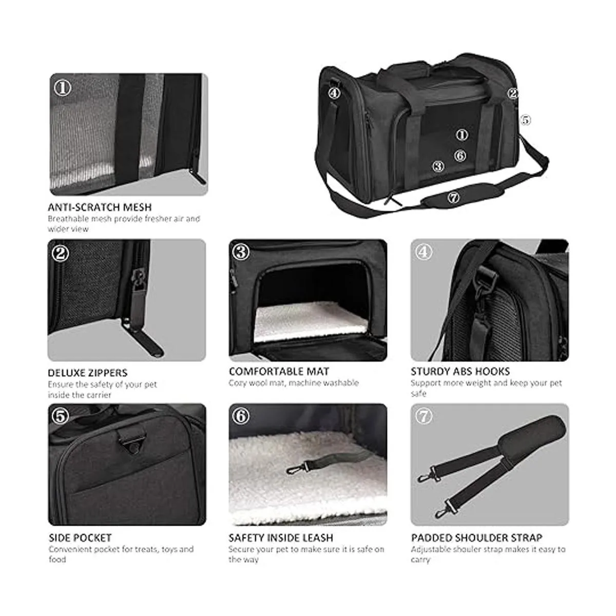 Transportador aprobado por aerolíneas: con diseño aprobado por aerolíneas, puedes llevar a tu mascota a todas partes. Este transportador para mascotas proporciona dos asas de conexión para un transporte equilibrado como un cinturón de seguridad doble o correa de equipaje para asegurar el transporte