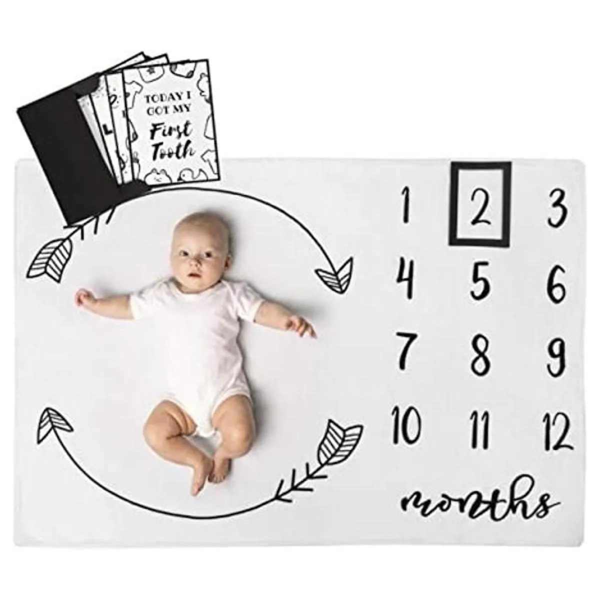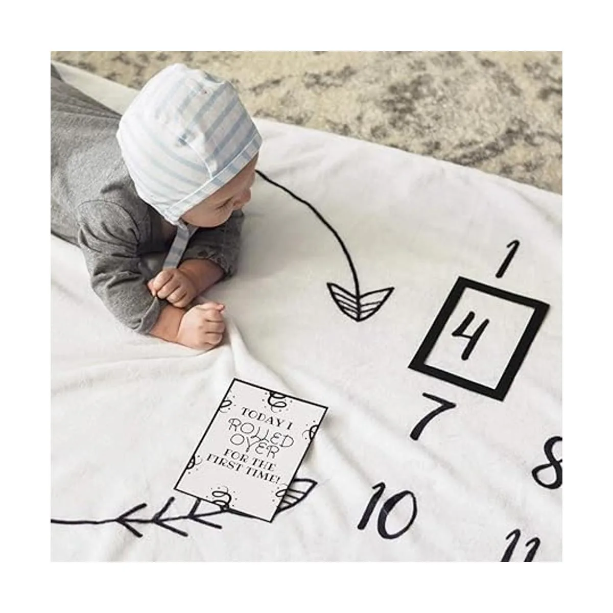 13 tarjetas de memoria y 12 meses: nuestra manta combina perfectamente con nuestras tarjetas de memoria y un marco para capturar meses de 1 a 12, así como recuerdos incluyendo primera sonrisa, primer diente, primer baño y mucho más. Después del primer año, tendrás todo lo que necesitas para crear un diario de fotos de recuerdo, álbum de recortes, álbum de bebé o cuenta de redes sociales con el desarrollo de tu bebé.