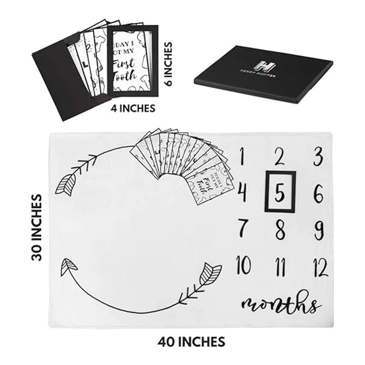 Captura momentos memorables: ya sea que estés capturando su primer mes o su primera palabra, la manta de bebé Henry Hunters para hitos mensuales y tarjetas de memoria te ayudará a capturar esos recuerdos especiales durante el primer año de tu bebé. Nuestro juego incluye 13 tarjetas de memoria y un marco, que viene en una funda para tarjetas, y una manta de forro polar 30 x 40 pulgadas, todo empaquetado en una elegante bolsa con cremallera lista para regalo.