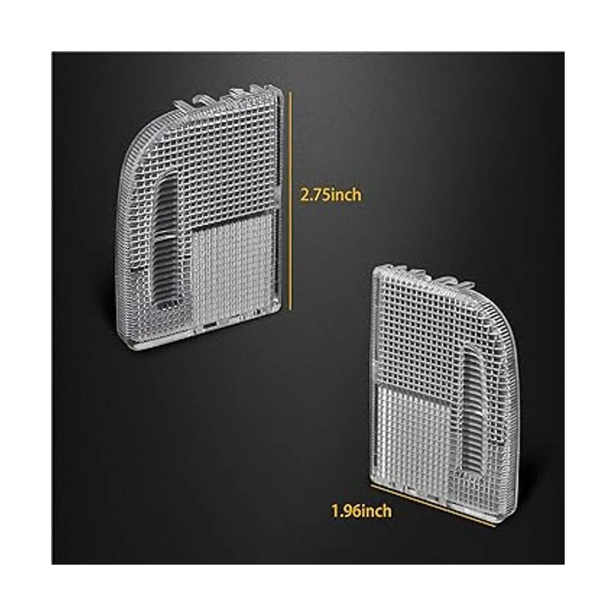 El paquete incluye: 1 par de lentes de luz de mapa de techo transparentes esmeriladas para consola superior de techo, cabina de techo, cubierta de luces de cúpula transparente esmerilada, bombillas o enchufes no incluidos