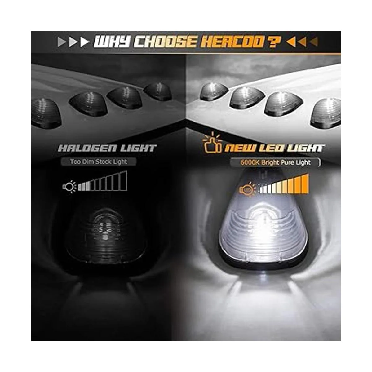 HERCOO Juego de 5 ópticas con luces LED para el techo de la cabina de vehículos Ford F150 F250 F350 F450 F550. Muy resistentes, Blanco