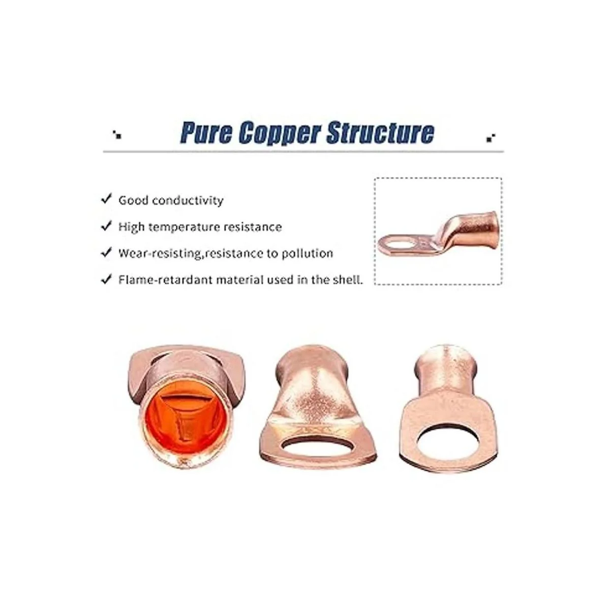 Fácil de usar: estos extremos de cable de cobre se pueden conectar a un cable eléctrico como un cable de batería mediante crimpado y soldadura. El tubo termorretráctil está precortado en los tamaños más comunes que mejoran la eficiencia de tu trabajo.