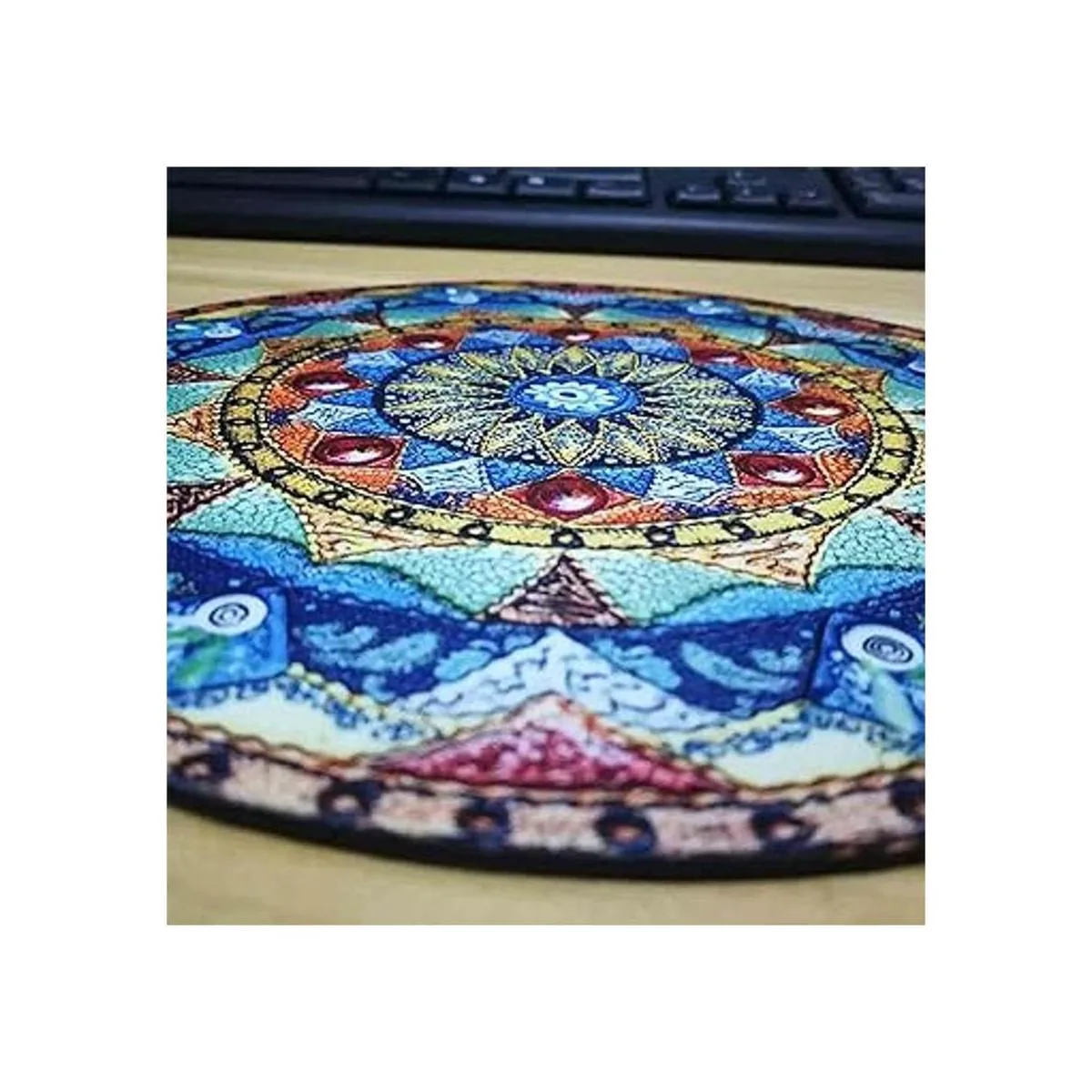 Hermosa pintura al óleo estilo acuarela mandala fondo de flor, antideslizante goma redonda alfombrilla de ratón perfecta para trabajar y jugar