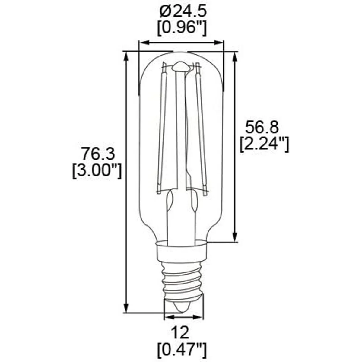 HEROLED T8DS2WWW27 Bombilla LED de filamento antiguo estilo candelabro regulable T8 E12 de 2 W equivalente a 25 W, blanco cálido 2700 K, paquete de 4