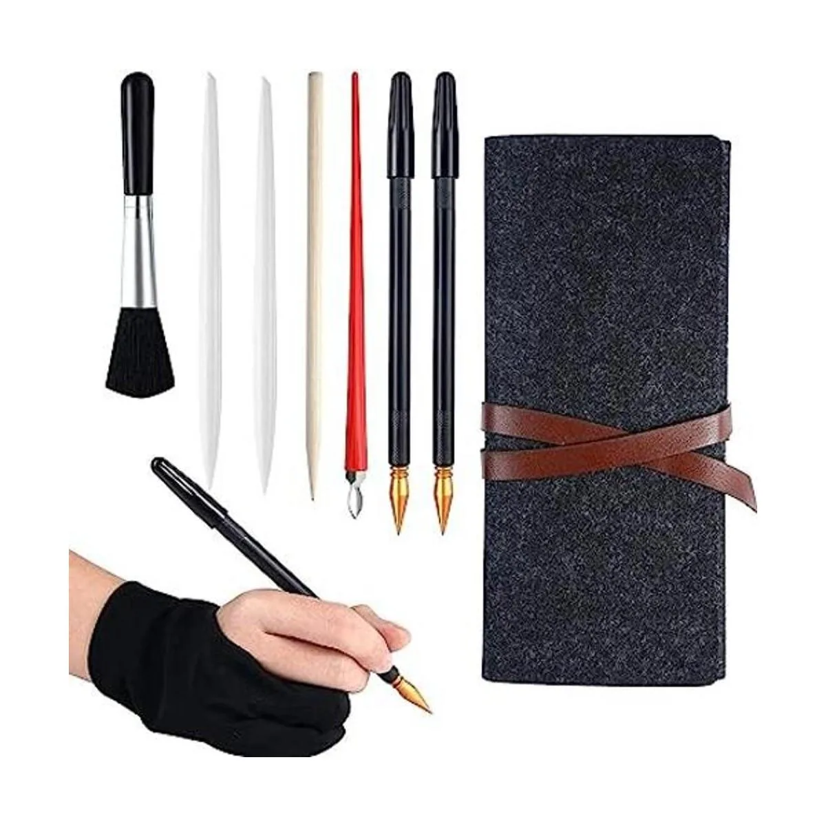 Herramienta de arte de pintura para arañazos, 10 piezas de rascar, incluye guantes de artista, cepillo de reparación, bolsa de herramientas, bolígrafos para colorear, lápiz de plástico y madera, raspador, cepillo de limpieza