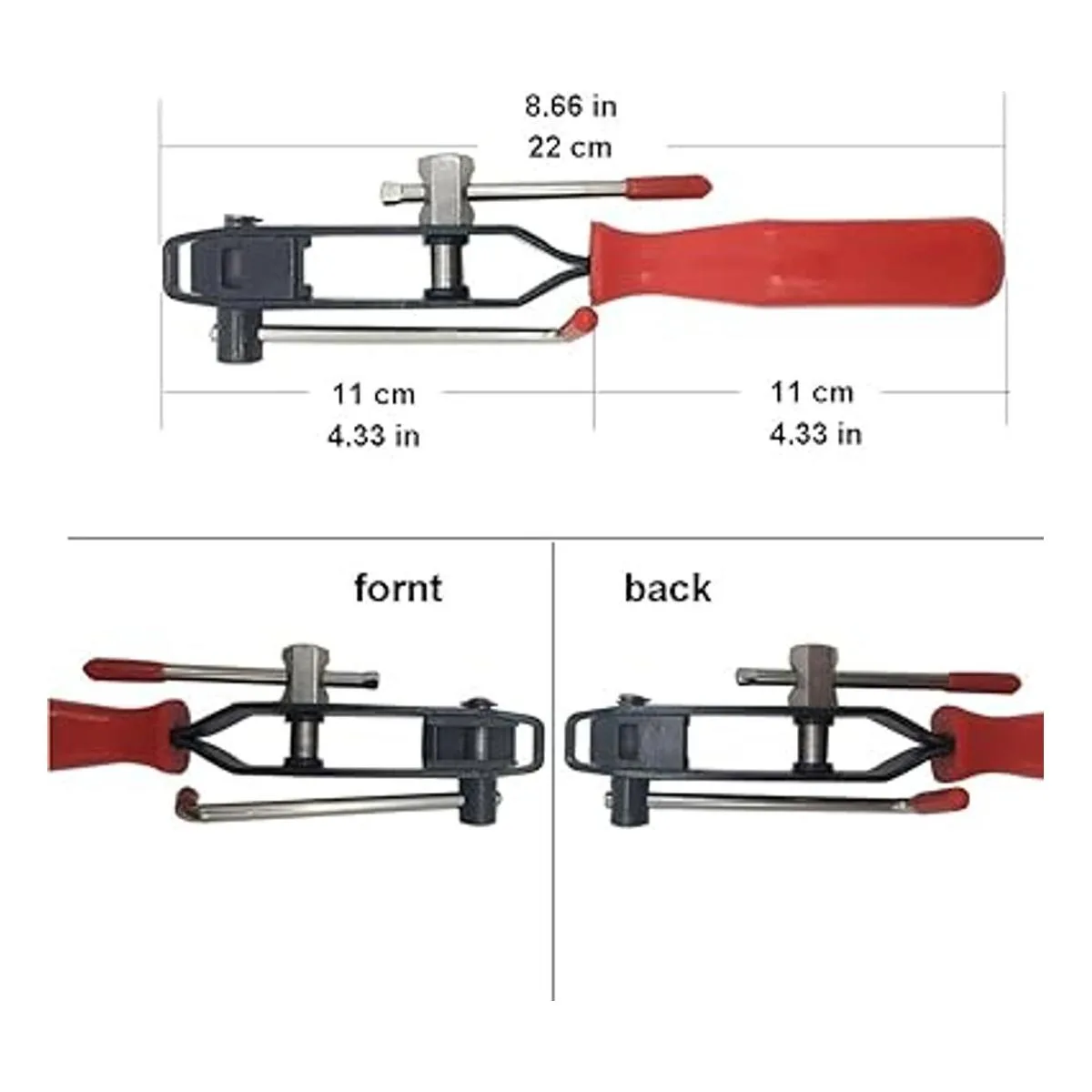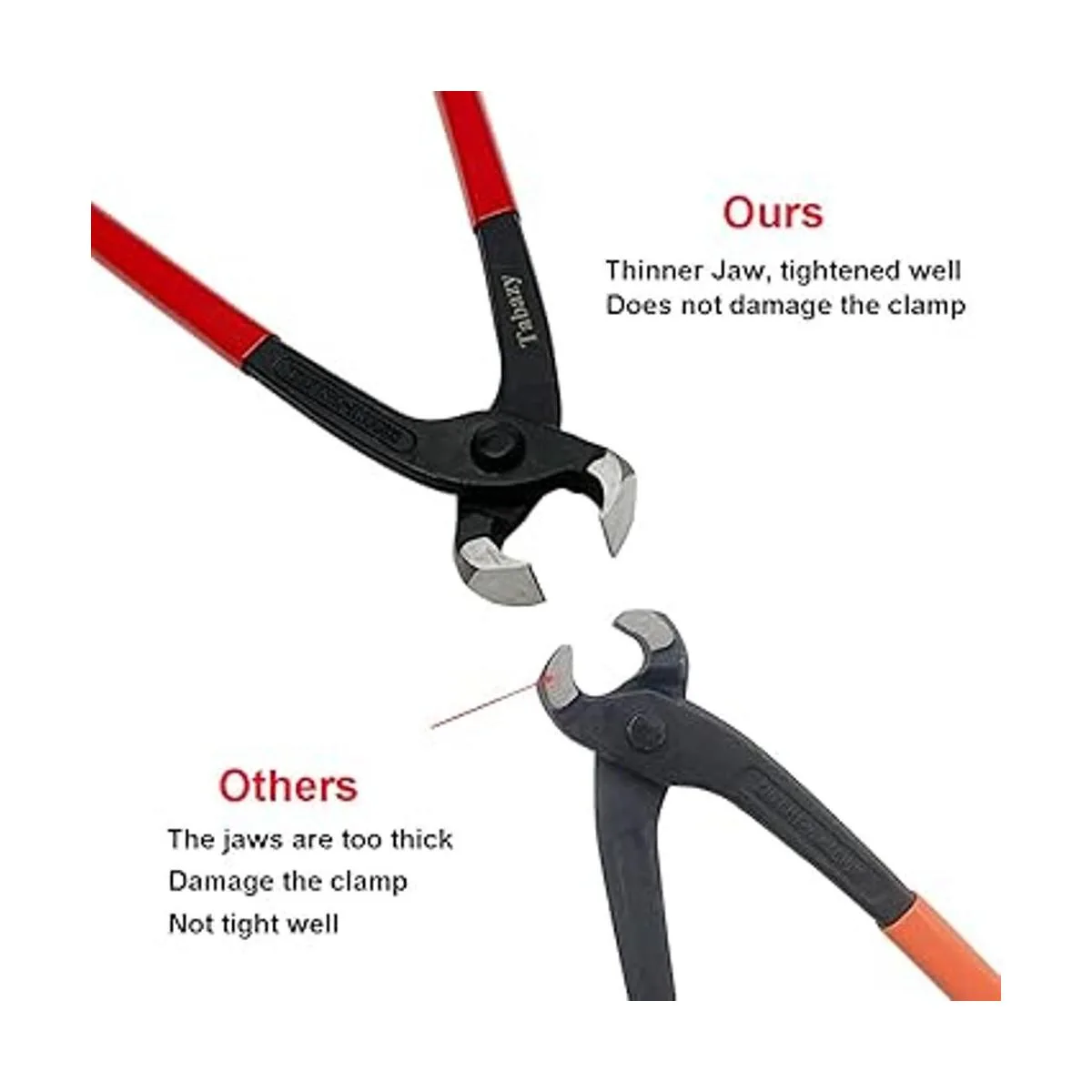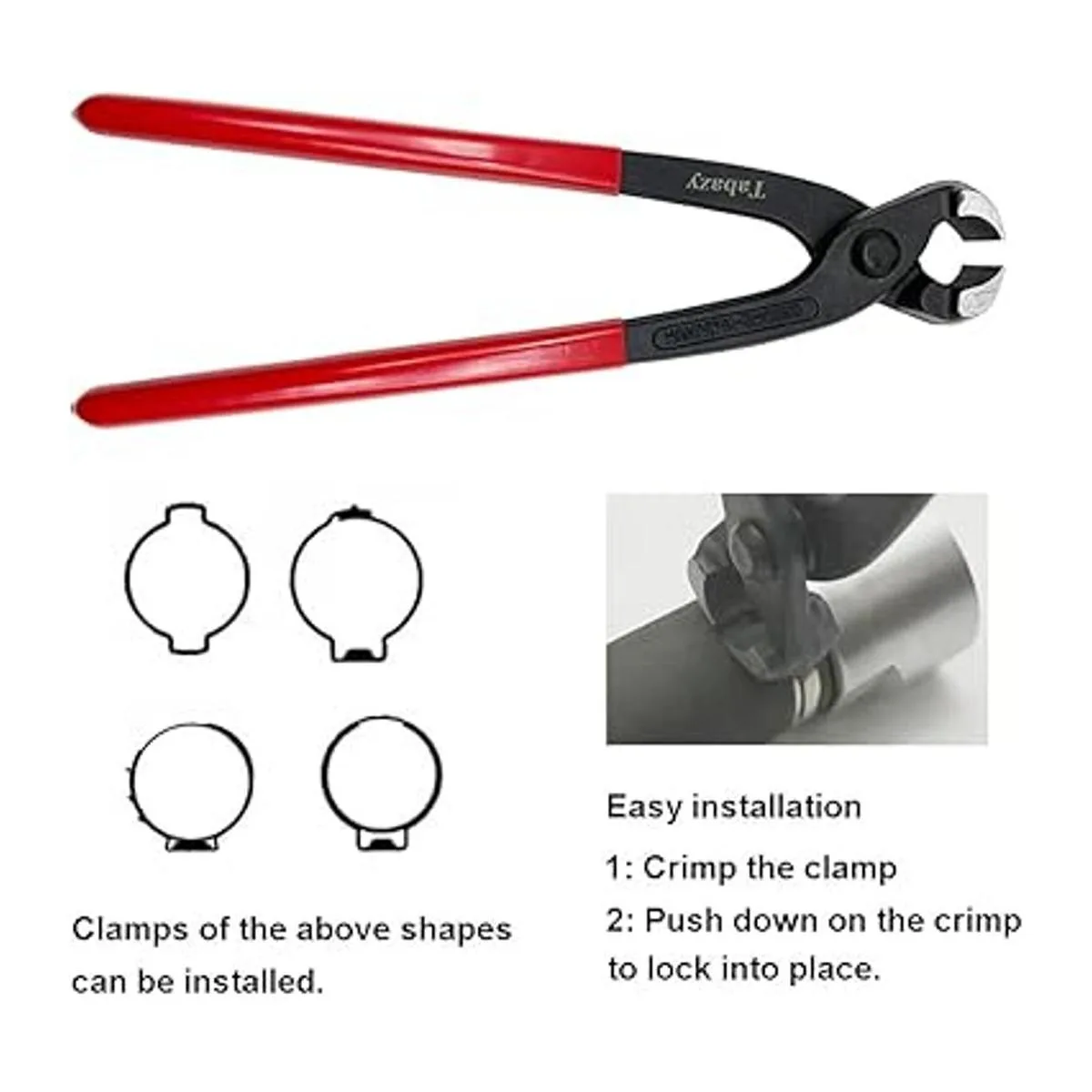 Herramienta de alicates de crimpado: pinza de abrazadera de oreja resistente equipada con mandíbula frontal de acero y asas de agarre antideslizantes que es conveniente para tu instalación, ampliamente aplicada a abrazaderas de manguera de oreja única, abrazaderas de oreja dobles. Ideal para instalar abrazaderas de maletero estilo banda en filtro de combustible, bombas de agua, botas de junta CV, maletero de eje ATV, estantes de dirección, ejes de transmisión y otras mangueras de sistema de refrigeración. El diseño de cabeza delgada permite una buena accesibilidad en zonas reducidas y no daña los puntos de presión en las orejas.