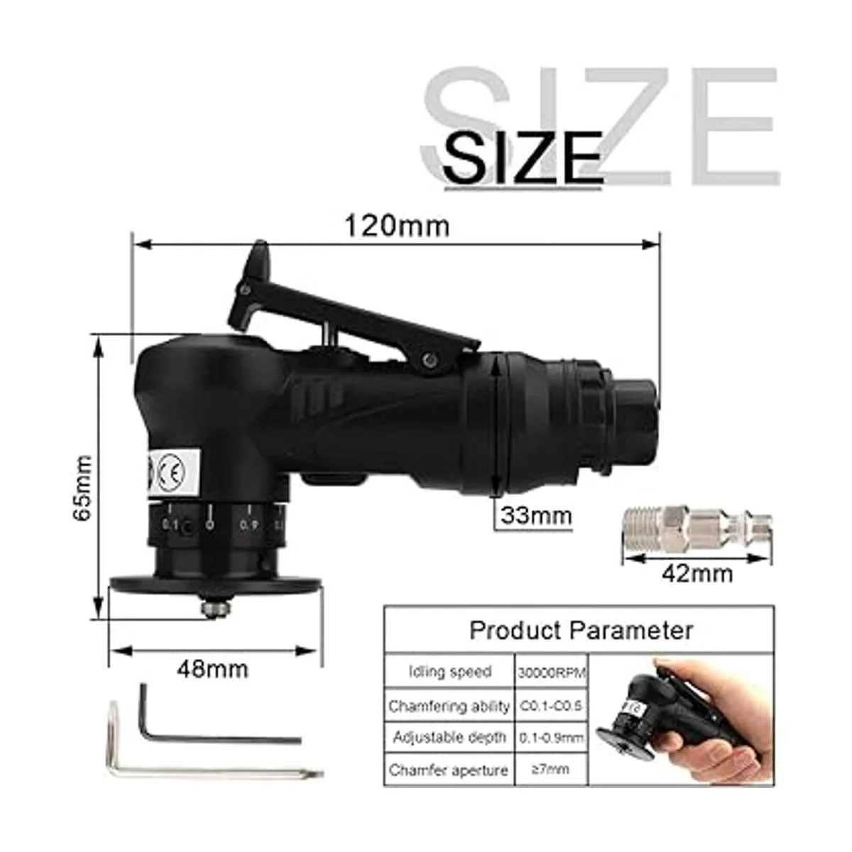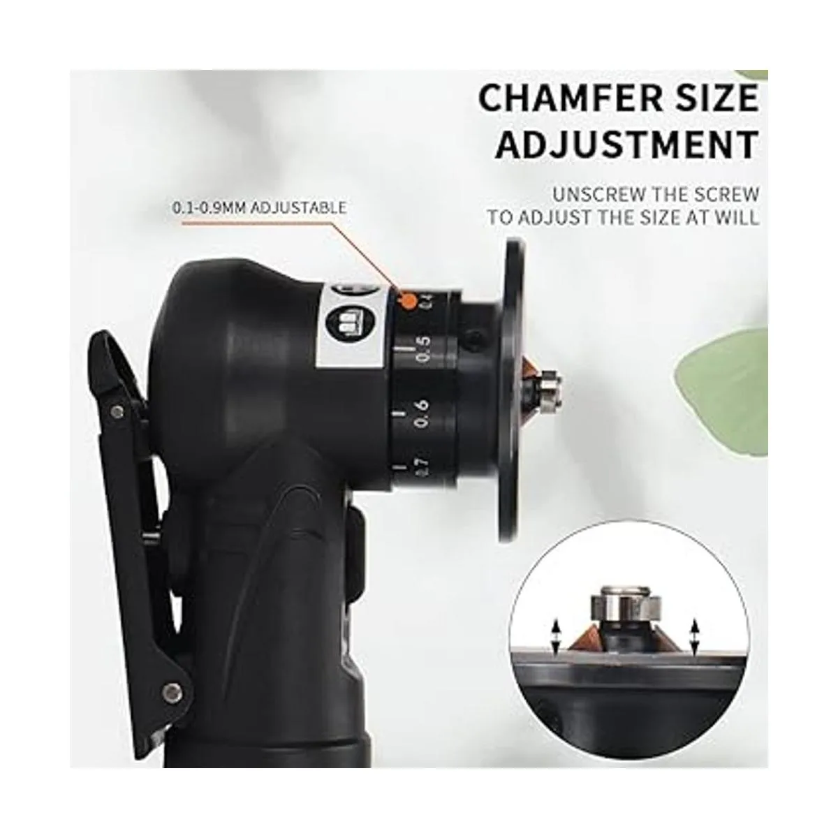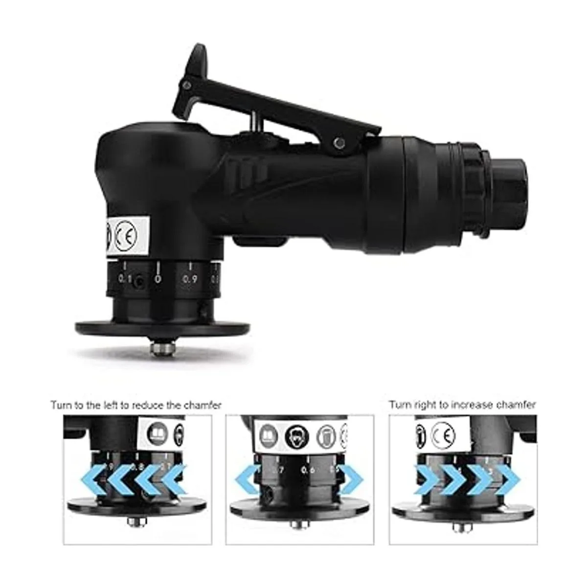 Velocidad y ángulo ajustables: la mini herramienta de biselado de aire de 1 a 5 bloques de ajuste de válvula gruesa, ajusta libremente la velocidad de engranaje que necesitas. El tamaño del chaflán se puede ajustar a voluntad. El interruptor de seguridad se utiliza para evitar el contacto accidental para proteger la seguridad del usuario en todo momento. Utiliza la llave a juego para ajustar fácilmente el tamaño del chaflán y reemplazar la hoja.