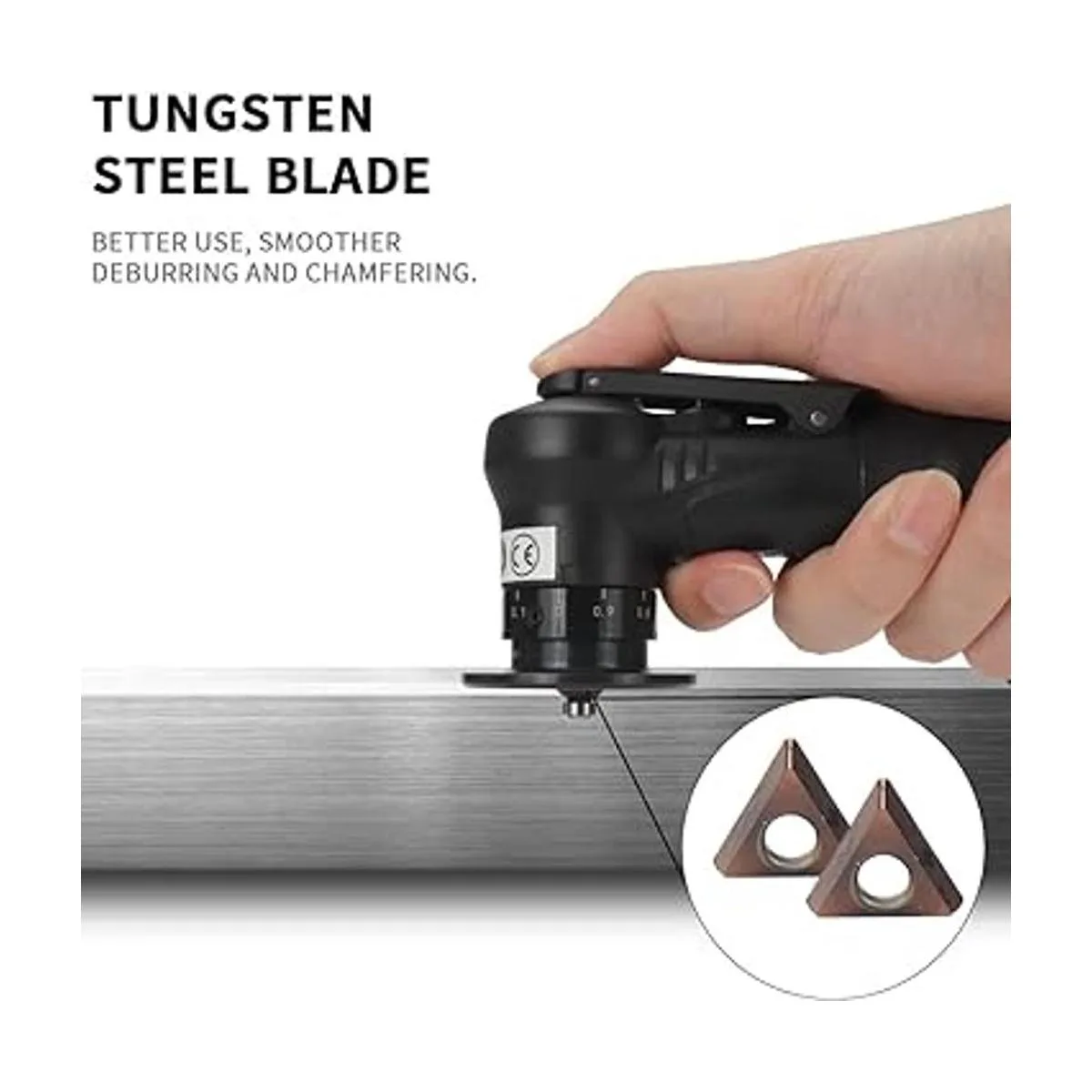 Herramienta de biselado neumática portátil para desbarbado, recorte, herramienta de biselado de aire lineal de mano ultra ligera de 45 grados para metal, mini máquina de biselado de borde de arco con inserciones de hoja de precisión