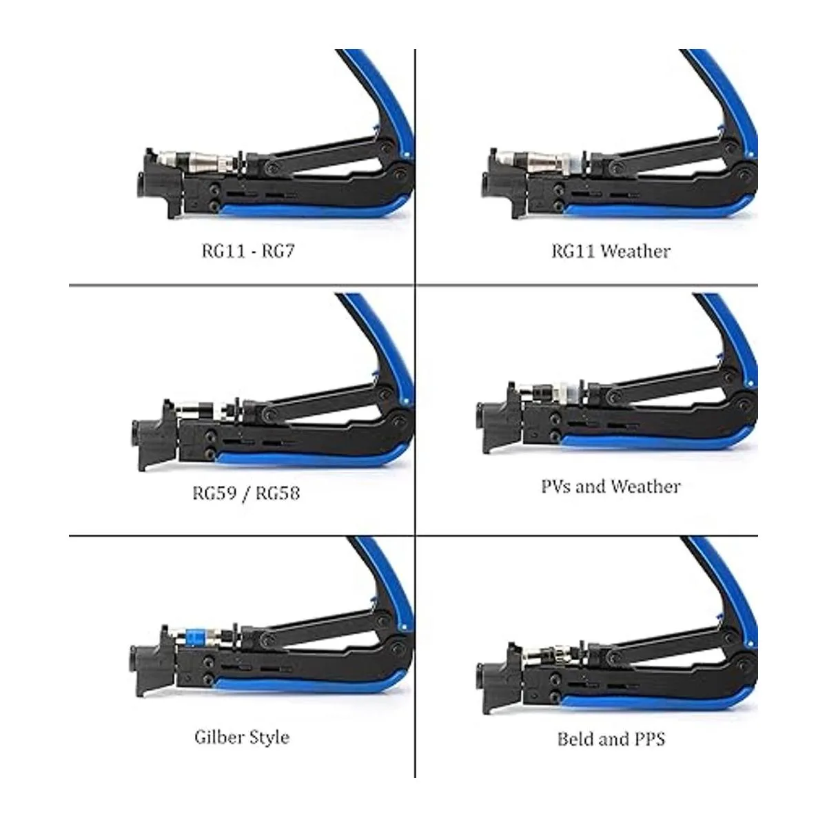 Herramienta de compresión coaxial compresión RG59, RG6, RG7 y RG11 para conectores F81RF, longitud y tipo ajustables, para casi todos los conectores fabricados