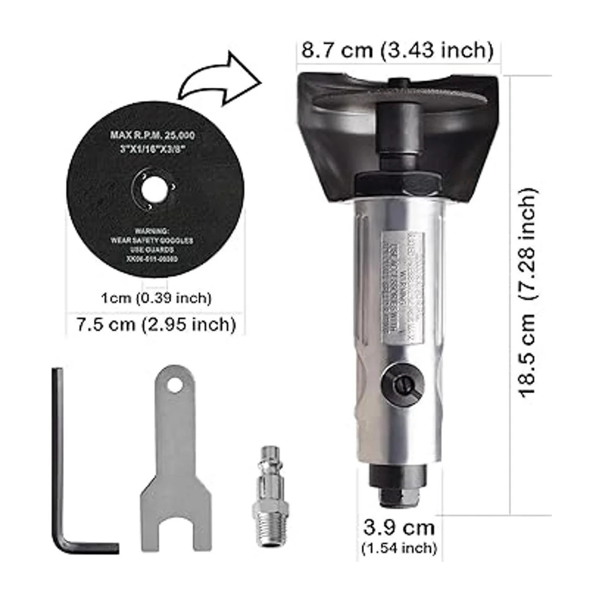 Herramienta de corte de aire de 3 pulgadas, cortador de aire de alta velocidad de 3 pulgadas, incluye 1 rueda de corte de 3 pulgadas, protector de 180 grados, cortador neumático de PROSHI