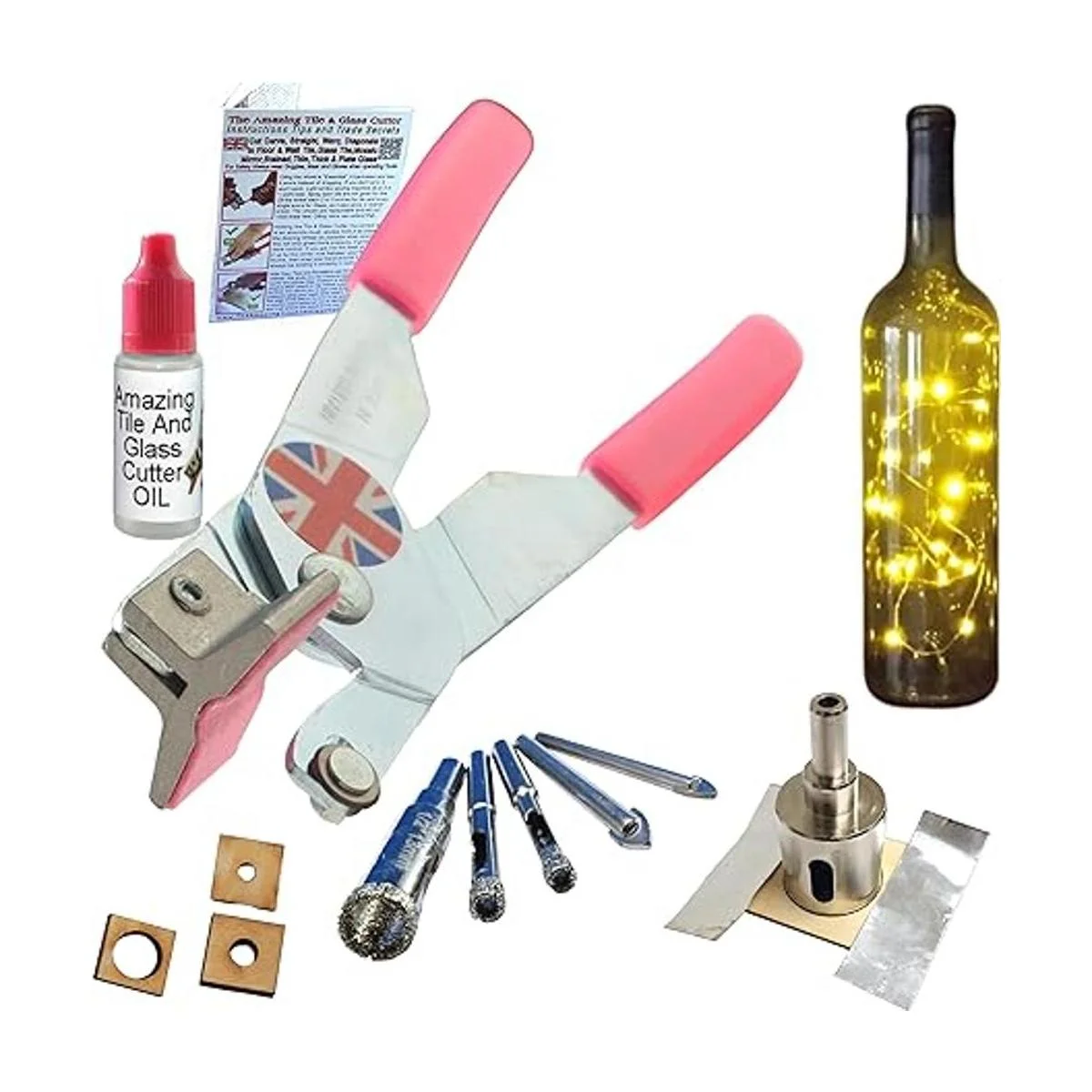 Herramienta de corte de espejo y kit de perforación de vidrio con kit de brocas de cristal de diamante para lámpara de vidrio o botella de vino, brocas y guías de diamante para colocar fácilmente agujeros en la botella de vidrio, cortador de aceite inc.
