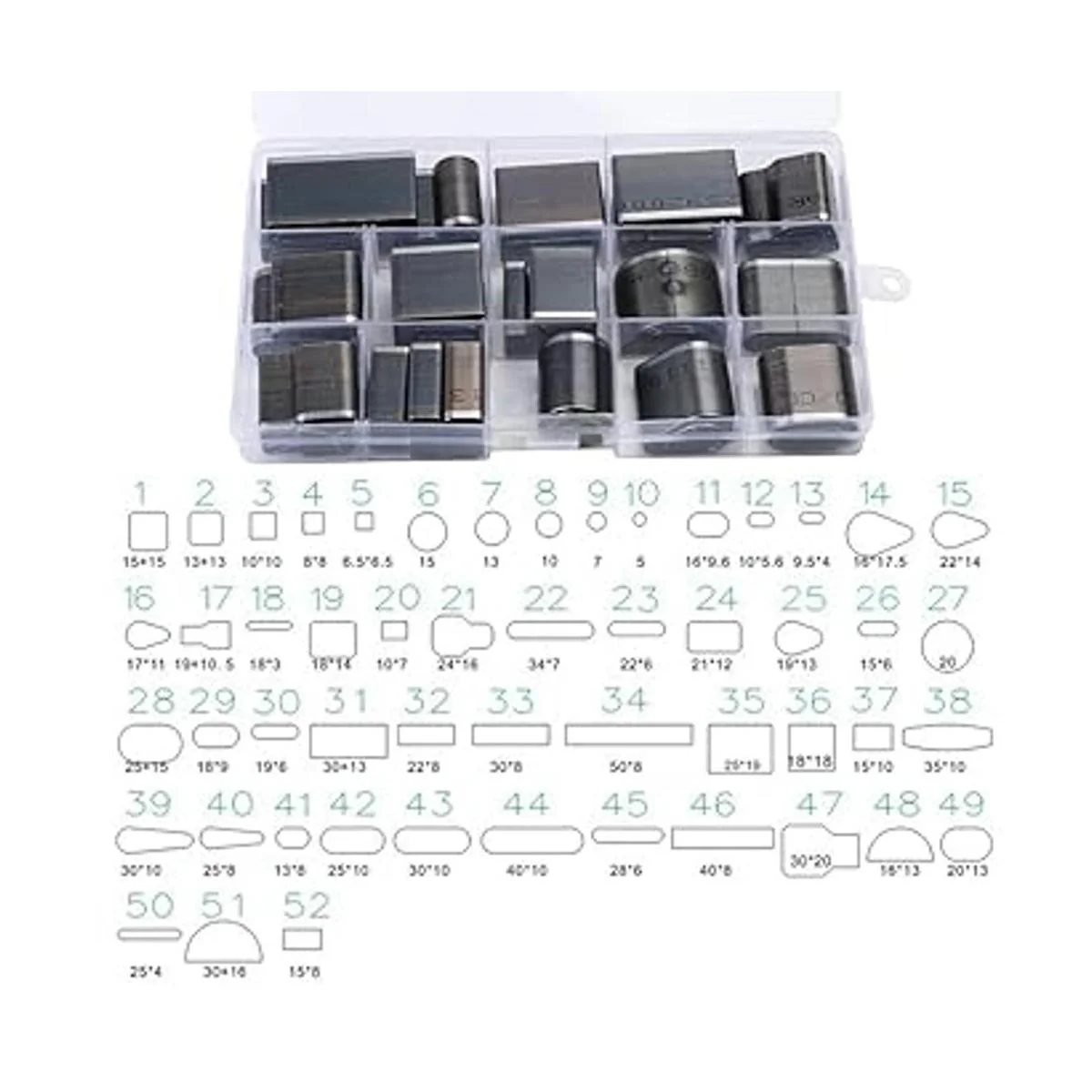 52 estilos de forma: este juego de perforadores tiene 52 estilos de forma, como agujeros circulares, agujeros cuadrados, agujeros ovalados, agujeros irregulares, etc. Varios estilos de forma para satisfacer tus necesidades.