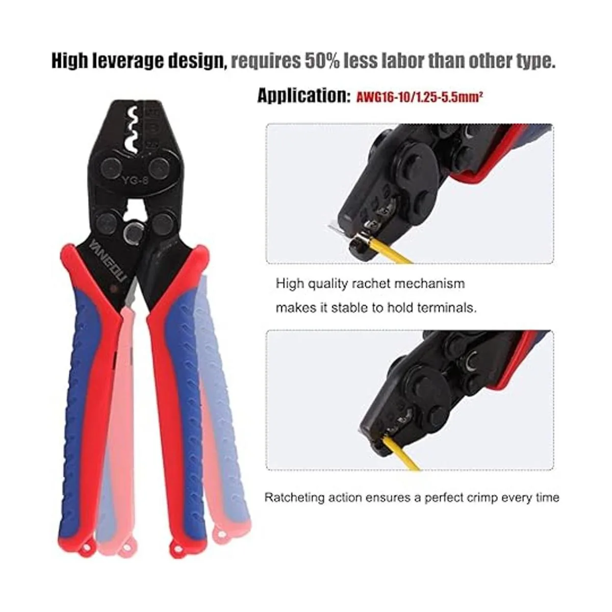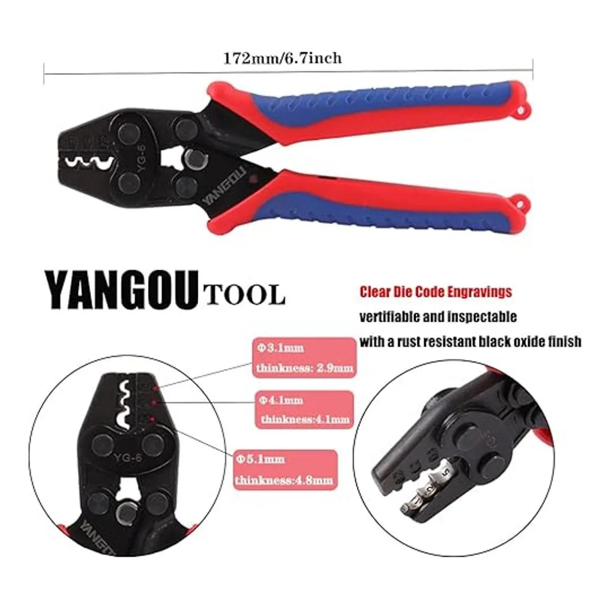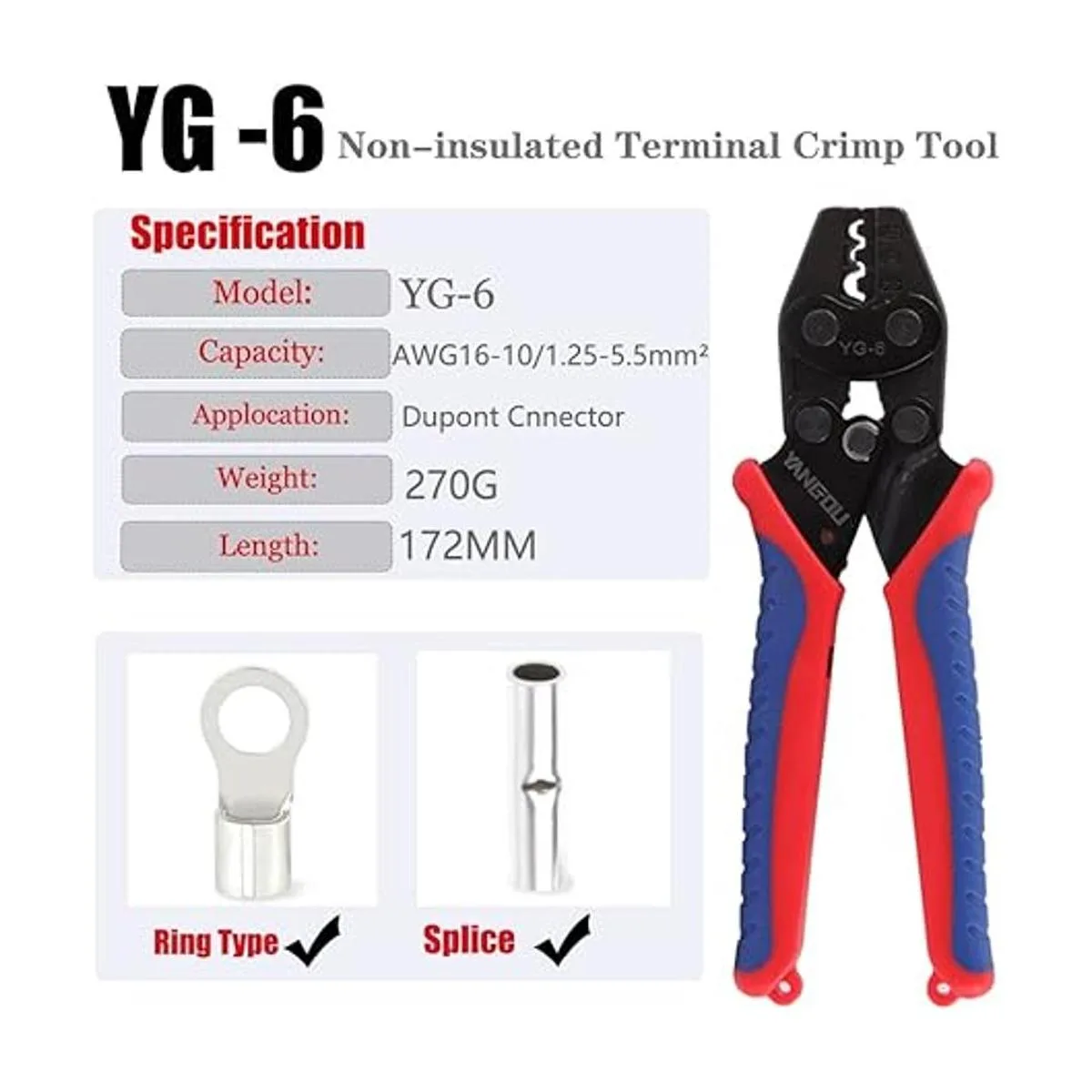 Herramienta de crimpado no aislada, Yangoutool YG6 terminal crimpadora para terminales Awg 1610 no aislados y conectores a topeespeciaabiertoenchufe