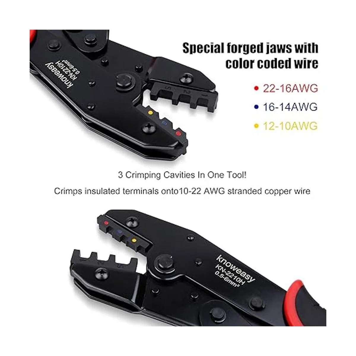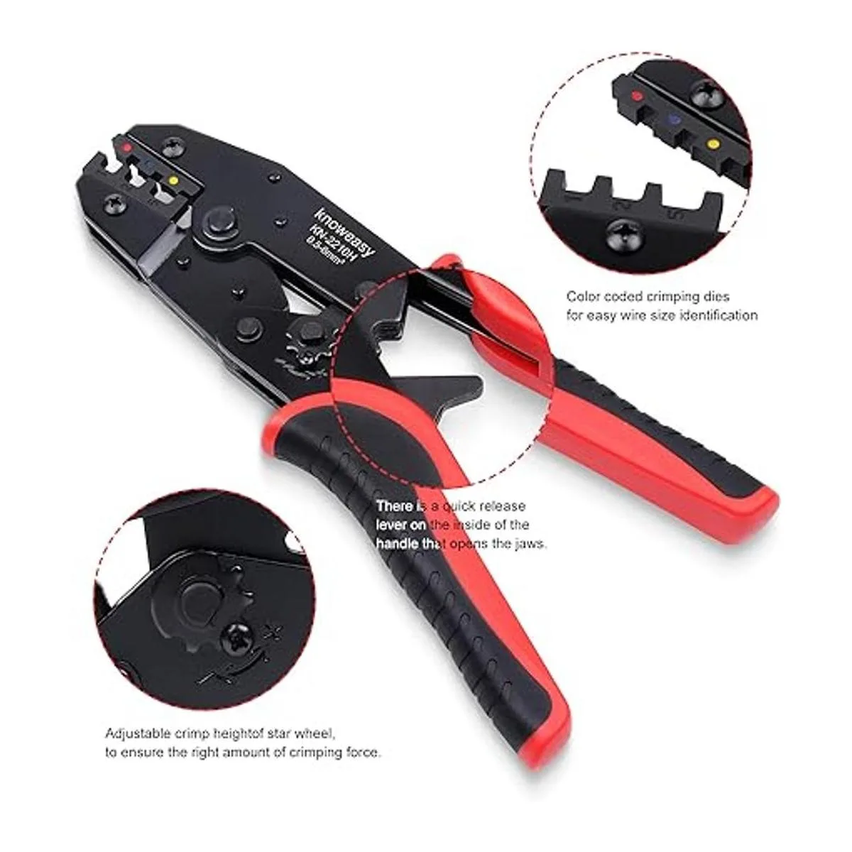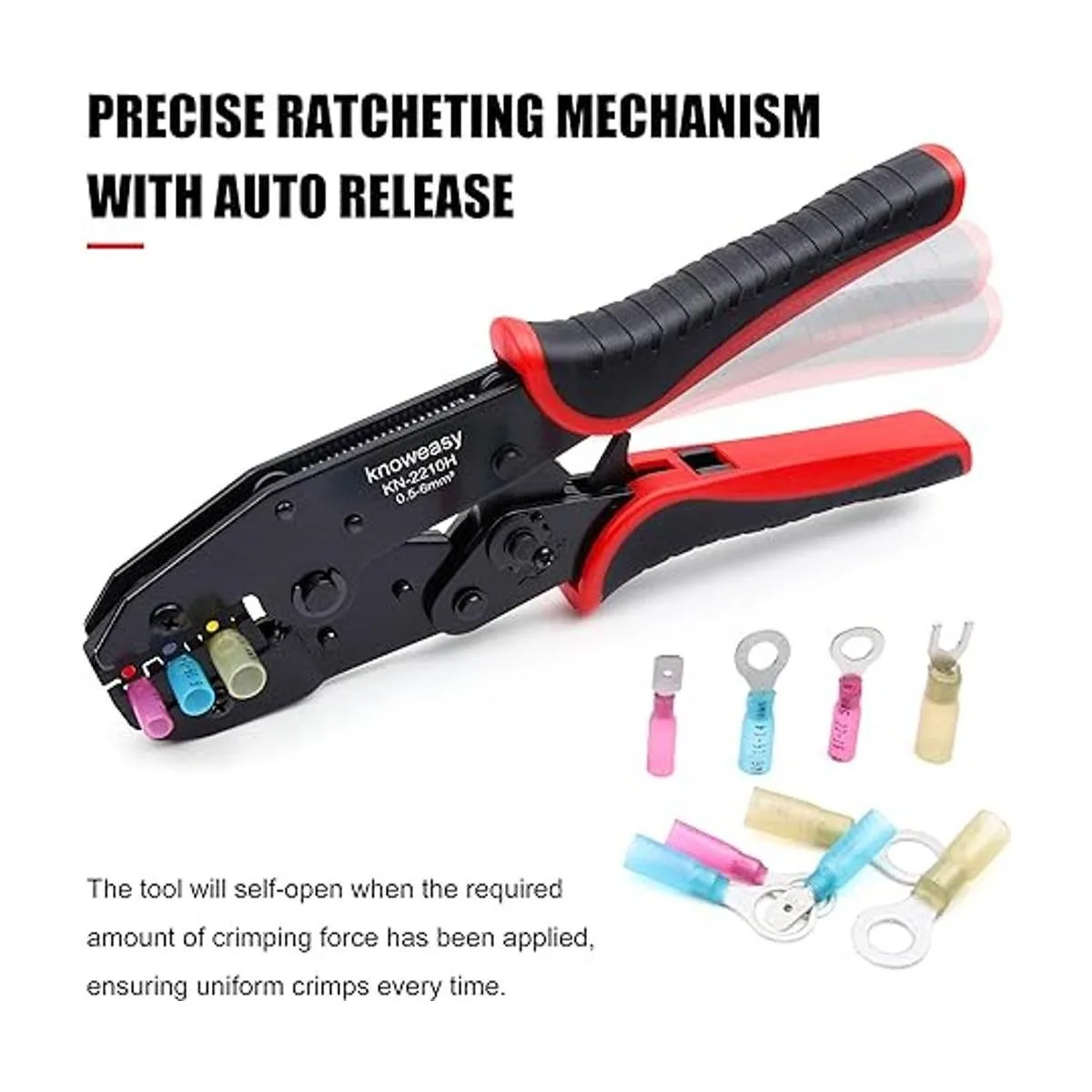 Herramienta de engarzado para conectores termoencogibles, herramienta de engarzado de alambre y conector Knoweasy para conectores de nailon aislados y conectores de alambre