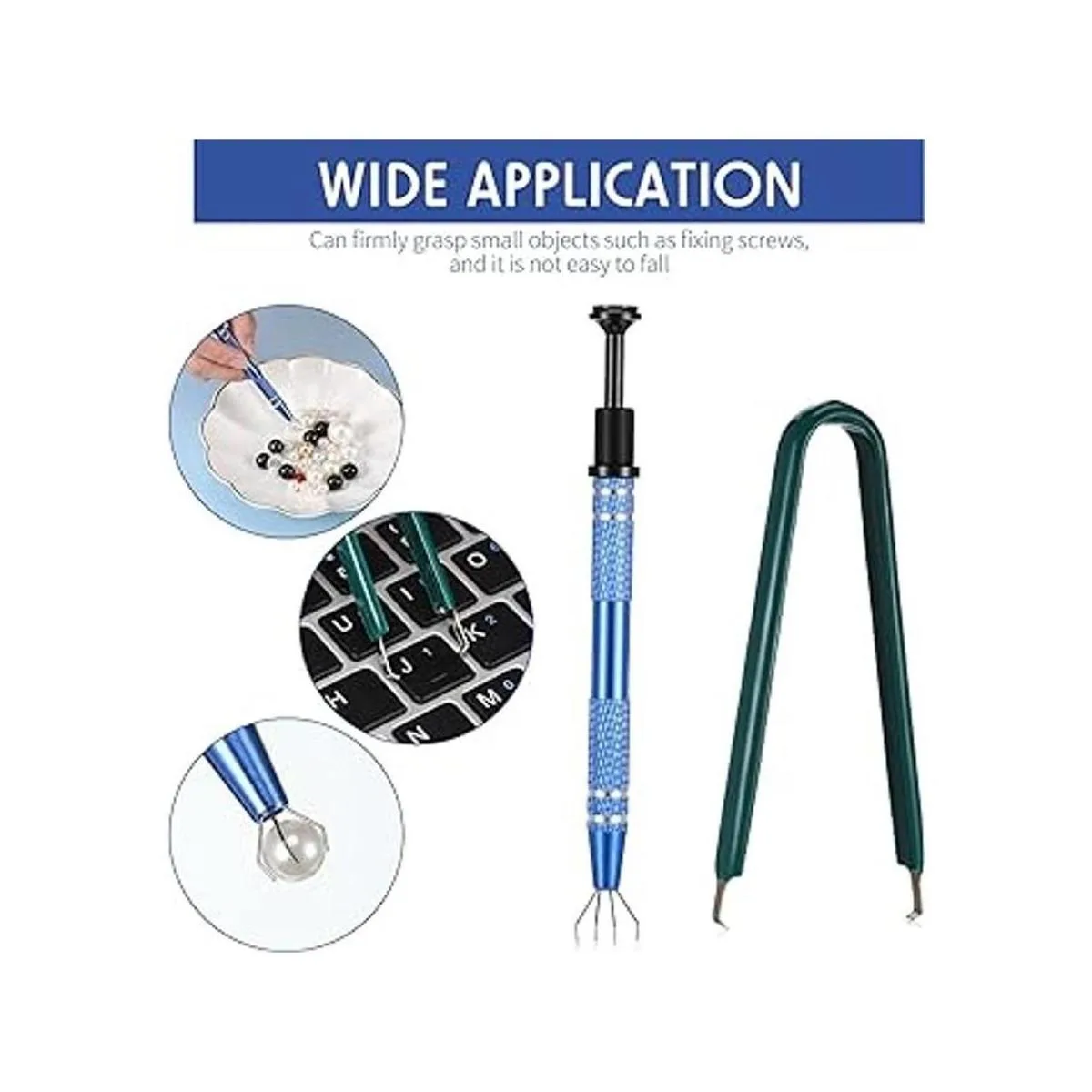 Amplia aplicación: el extractor de chips se puede aplicar para agarrar e instalar conductores IC de componentes electrónicos, adecuado para la reparación de teléfonos móviles, televisores o piezas electrónicas. También es adecuado para el agarre de objetos finos como la fabricación de joyas y procesamiento, etc.