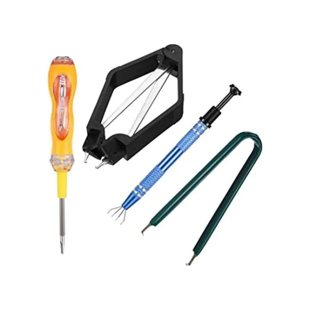 Diseño y practicidad: el diseño de 4 garras de recogedor de 4 garras puede agarrar firmemente objetos pequeños como tornillos de fijación, y no es fácil de caer. El material antideslizante del extractor IC en forma de U y el diseño en forma de U ahorra trabajo pueden reducir la fatiga de la mano, ahorrando esfuerzo. El diseño de gancho pequeño del extractor de chip PLCC IC puede extraer e instalar rápidamente el conductor IC sin dañarlo. El probador eléctrico puede probar si hay electricidad para evitar electricidad. choque.