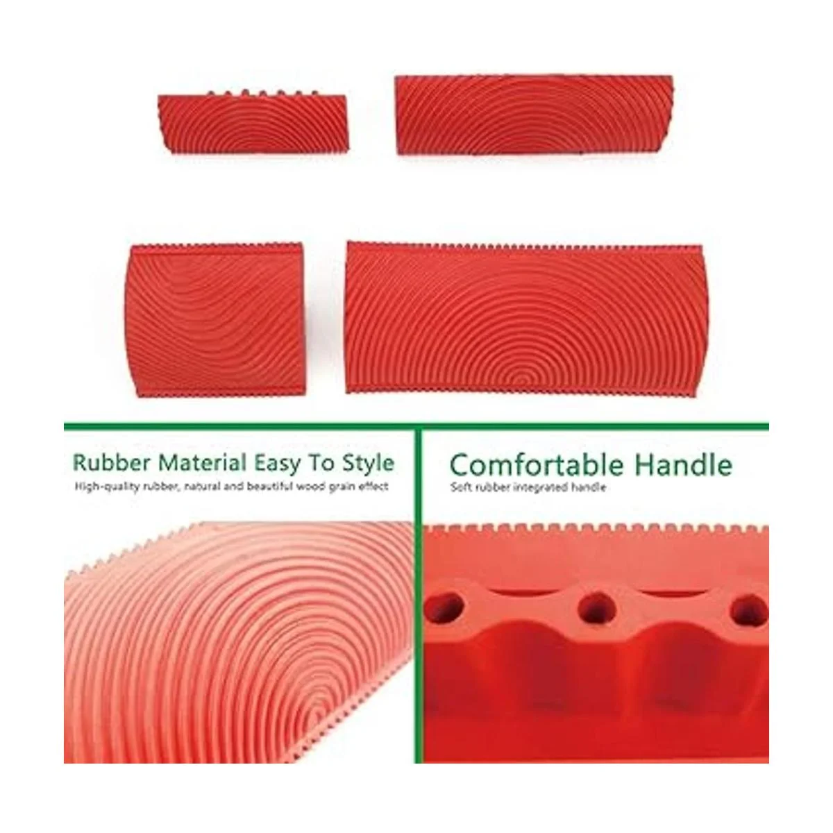 Herramienta de grano de madera de 4 piezas, herramienta de grano de madera, herramienta de moleteado de madera de goma en todas las superficies