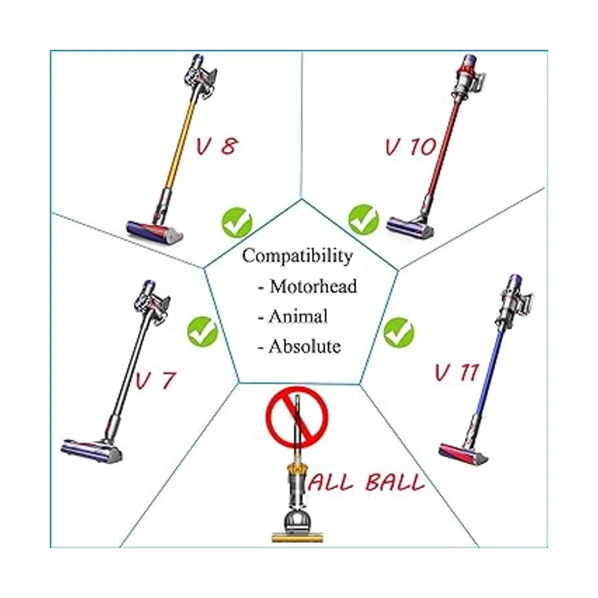 Compatible con aspiradoras Dyson de mano inalámbricas V15 V12 V11 V10 V8 V7 Detect, Detect, Outsize, torque Drive, absoluto, esponjoso, animal, ciclón, limpieza total, coche y barco. No compatible: Dyson V6, modelos Dyson DC, modelos de animales Dyson tipo bola/recipiente, no para modelos Dyson tipo piso vertical